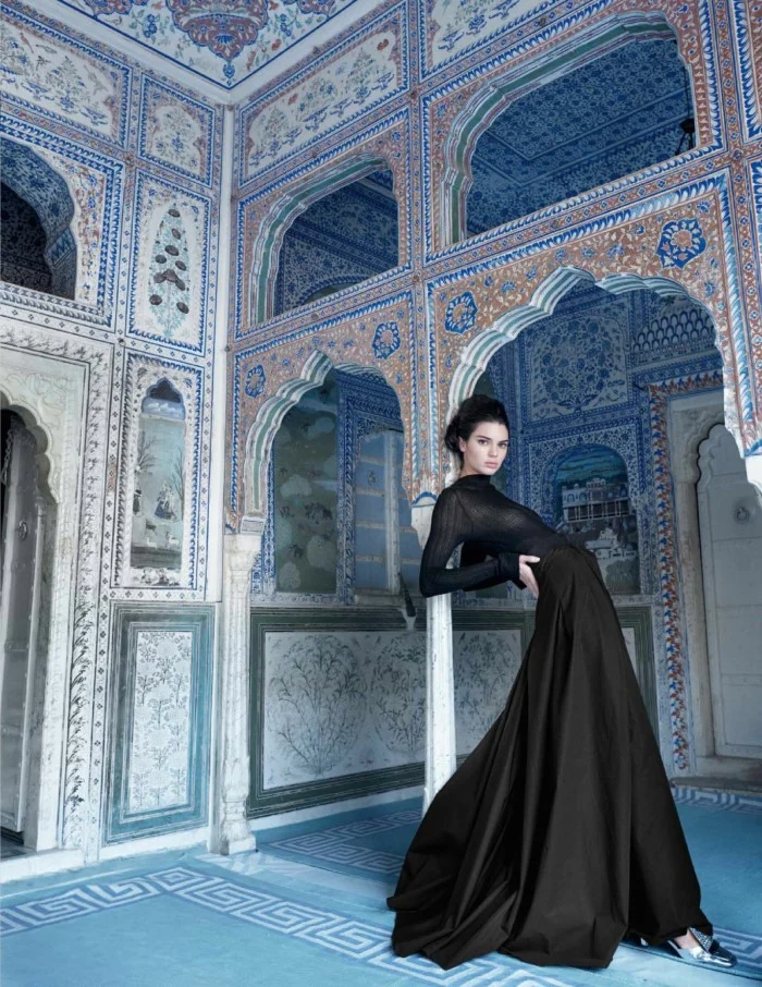 Vogue India celebrates its 10th anniversary with Mario Testino at the helm as guest editor, creative director and photographer for the celebratory issue. Testino and Vogue India editor Priya Tanna tap 'it girl' Kendall Jenner for the cover and this editorial 'Heated Summer'. Sara Jane Hoare styled Kendall for the shoot at Samode Palace near Jaipur, India.