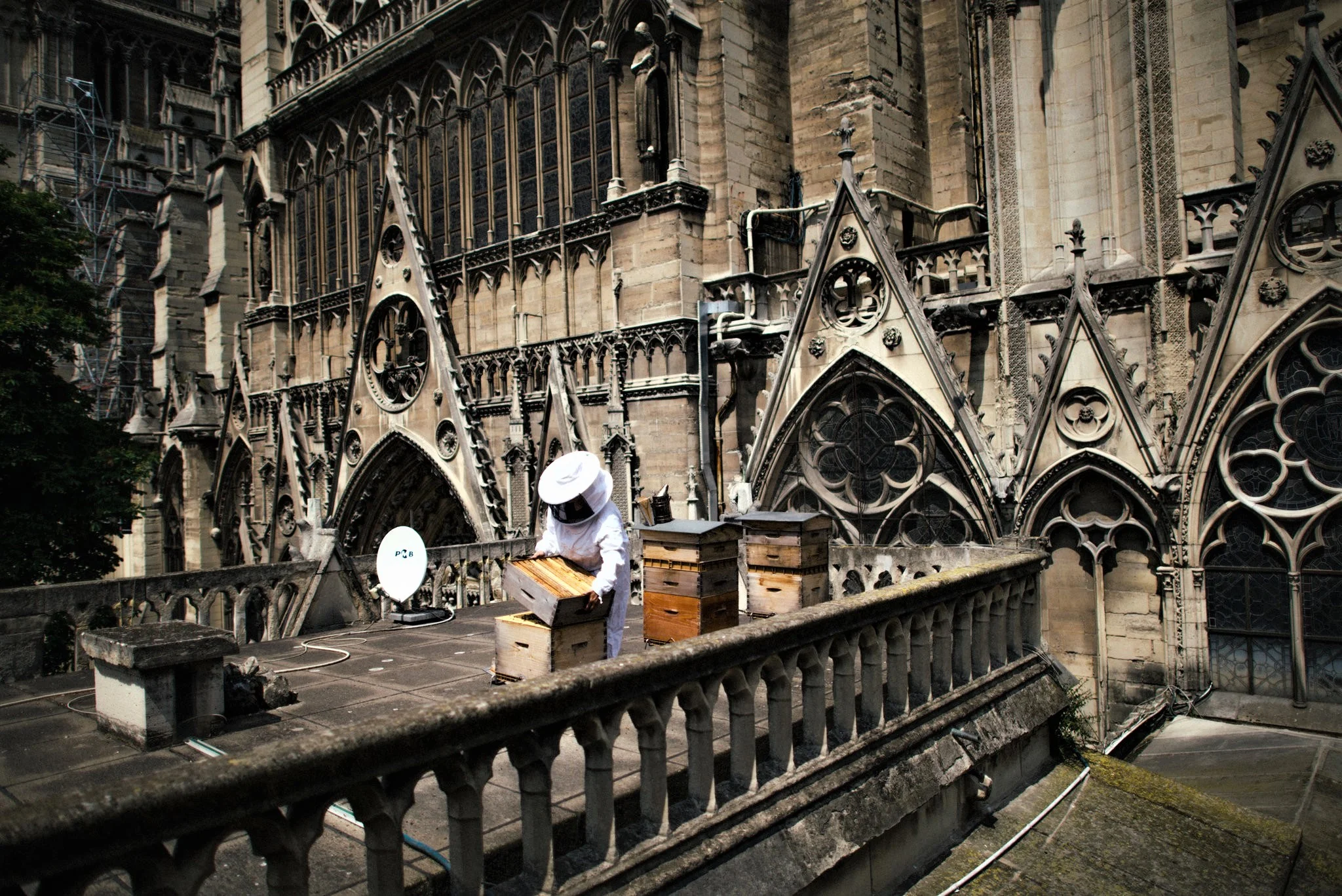 /The beekeeper Nicolas Geant settled three hives on the roof of the sacristy of Notre Dame. via CNN