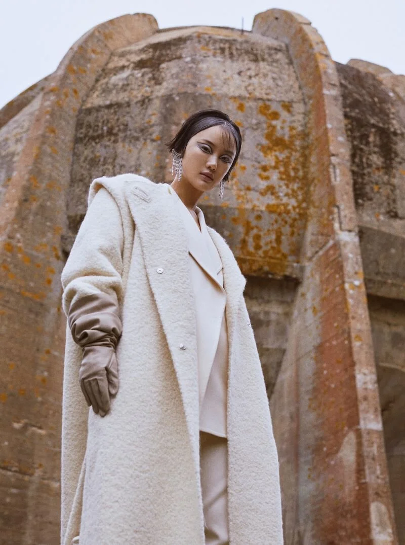 Model Gia Tang is styled by Sayuri Bloom in ‘Raw Allure’, lensed by David Reiss for South China Morning Post Style Magazine December 2020. The site of the fashion shoot is not the remnants of some earlier civilization but the three concrete “listening ears” at Denge near Dungeness in Kent.