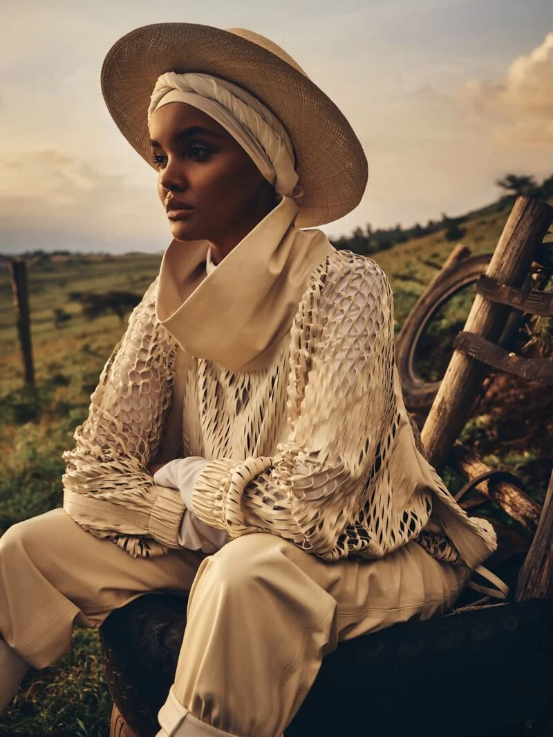 The collection of luxury looks from Alexander McQueen, Bottega Veneta, Brunello Cucinelli, Hermes, Valentino and more is photographed with the Maasai of Ngong Hills. Olivia Phillips conducts the interview: February Cover: Refugee-Turned-Cultural Icon Halima Aden Is The Hero We All Deserve.
