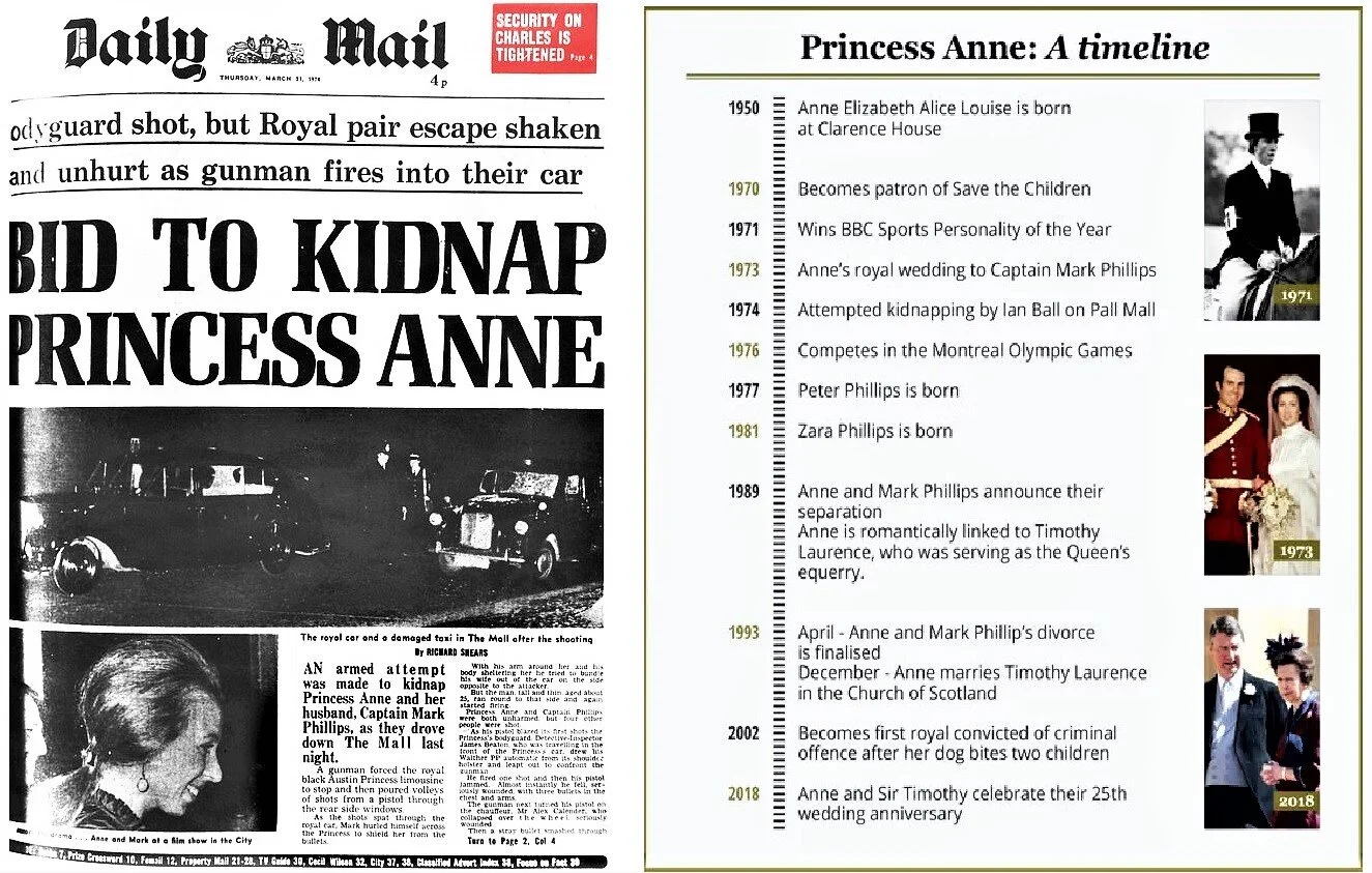 One of the best Queen Anne stories centers on a 26-year-old would-be kidnapper Ian Ball, who targeted Anne one March evening in 1974 as she rode towards Buckingham Palace with her husband of four months Mark Phillips, a Captain in the British army. Confronted by her attempted kidnapper Anne made it totally clear that it was “not bloody likely” she’d be going anywhere with him. And she was right. For more details read a 2014 recap in Smithsonian Magazine.