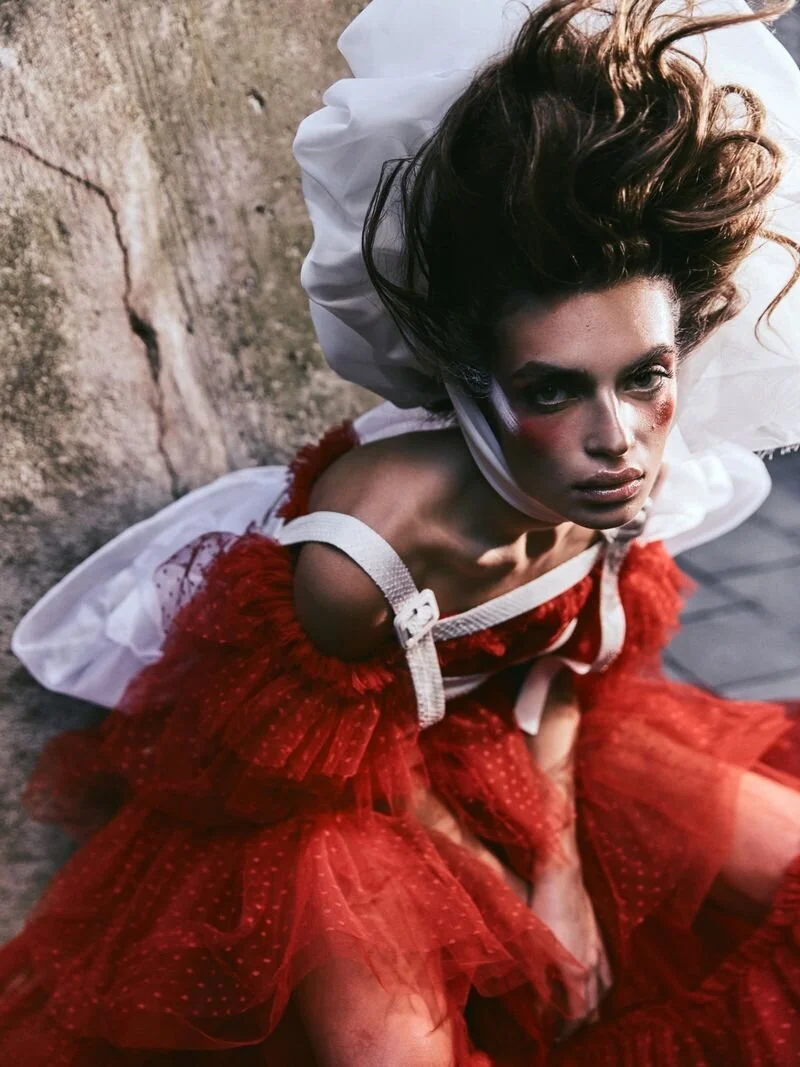 Model Rubina Dyan is styled by Anna Castan in ‘Theatre of Dreams’, lensed by Greg Swales for Harper’s Bazaar Arabia May 2020./ Hair by Riad Azar; makeup by Ana Siqueira