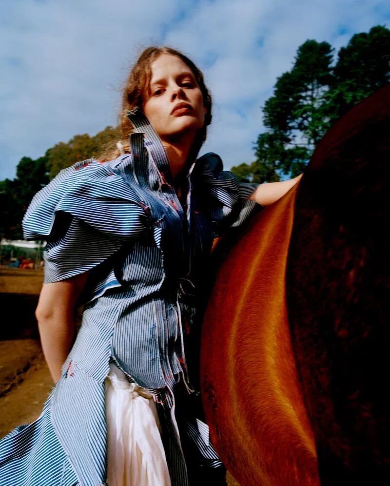 Model Maeve Whalen is styled by Zoë Bleu (Arquette) in ‘Big Heart Ranch’, lensed by Harry Carr for Vogue Ukraine May 2020.
