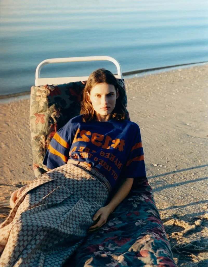 Model Giedre Dukauskaite is styled by Irene Barra in ‘Silver Sands’, lensed in long-ago memories by Ina Lekiewicz [IG] for Numero Tokyo May 2021./ Makeup by Annie Ing