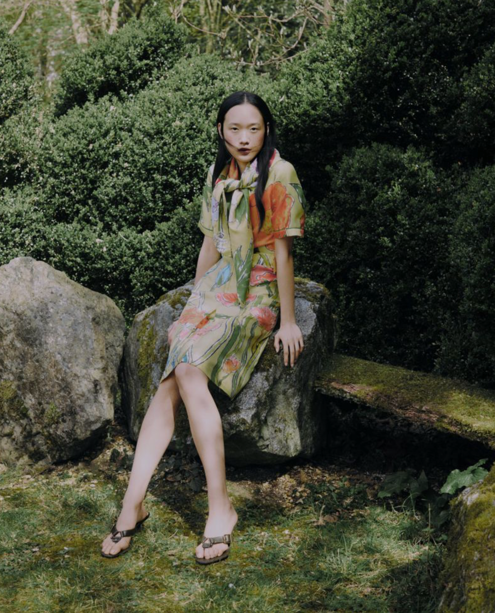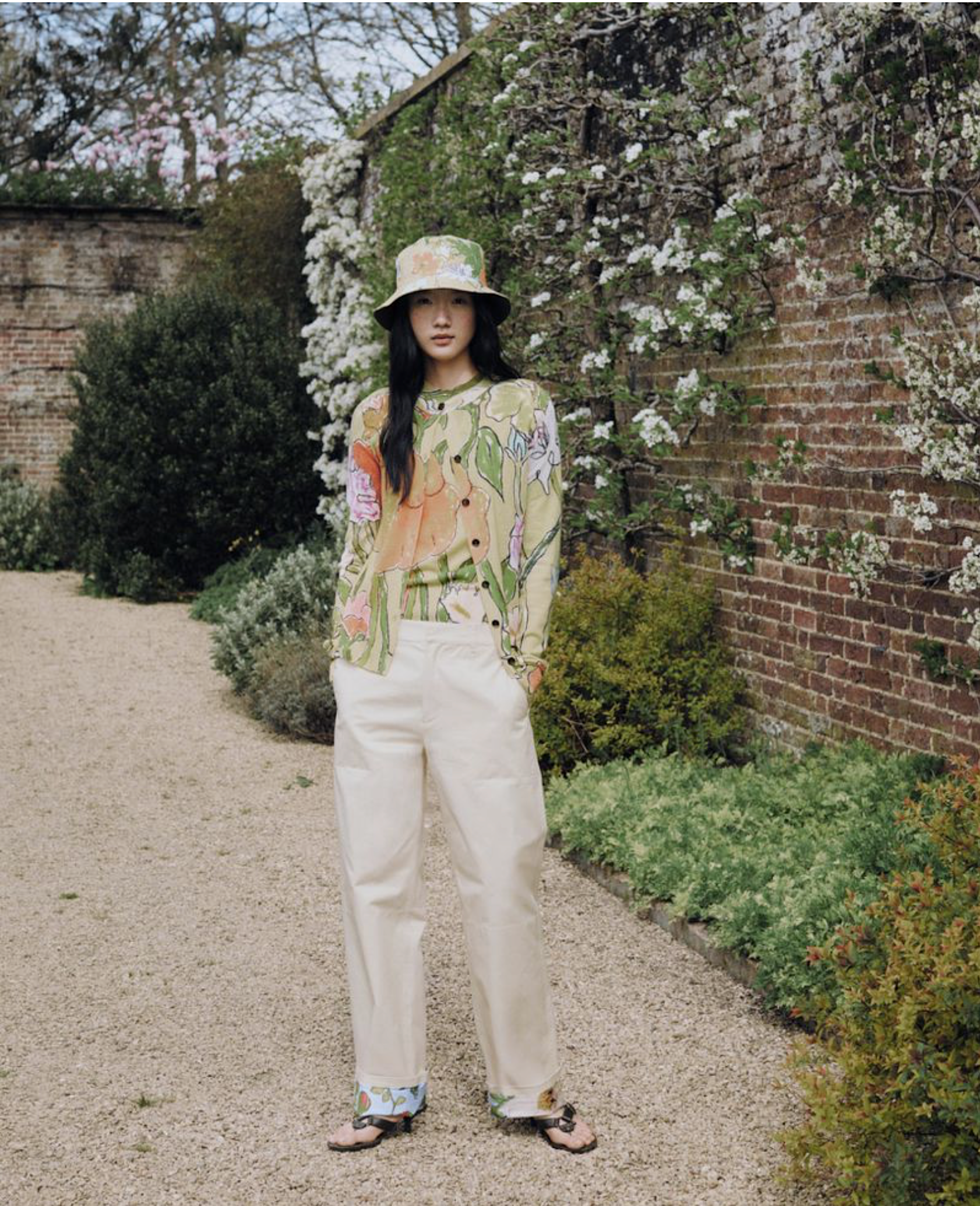 Enjoy the Highgrove Instagram and also these images with original prints by artist Helen Bullock, who created four bold and beautiful designs inspired by the Kitchen Garden at Highgrove for the collab./ Hair by Chris Sweeney; makeup by Celia Evans