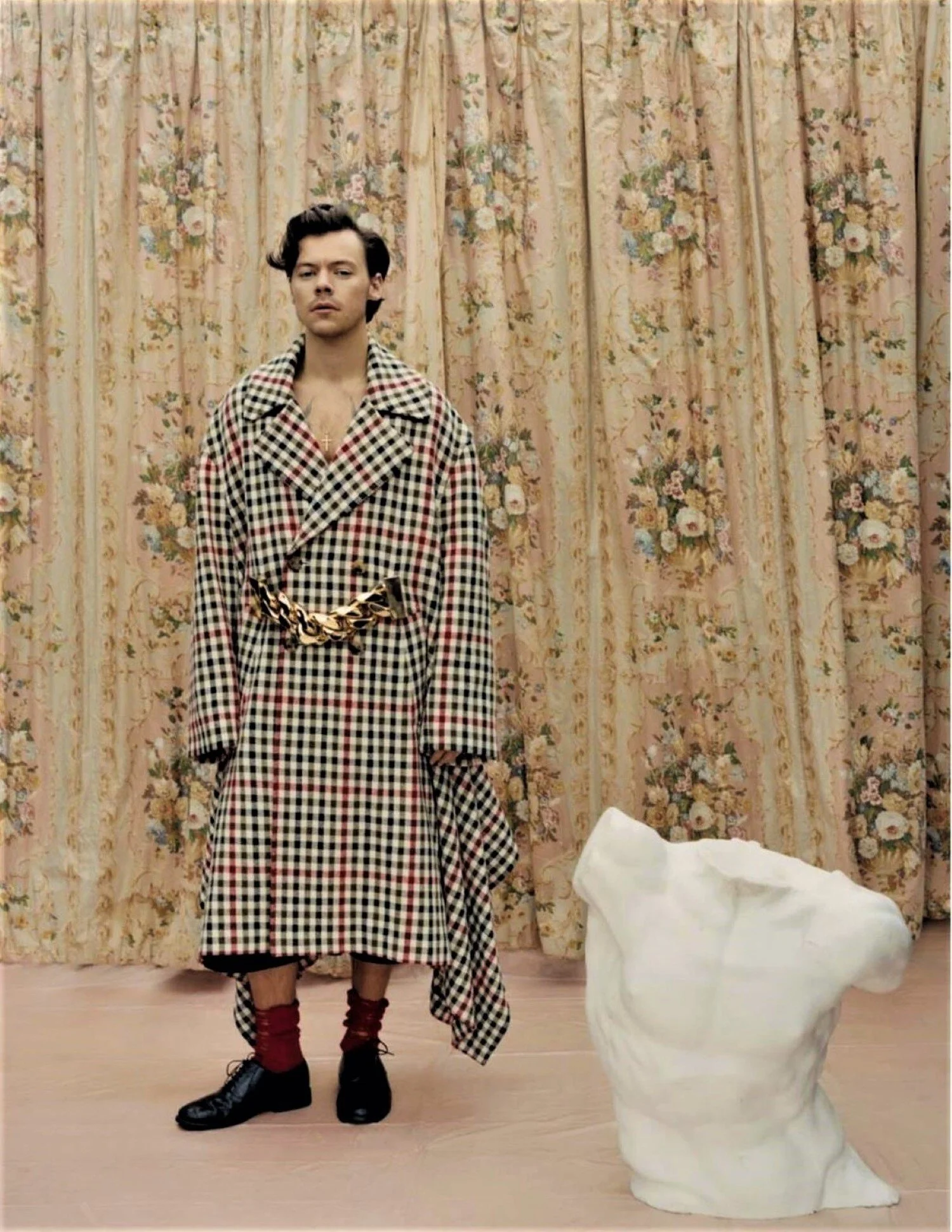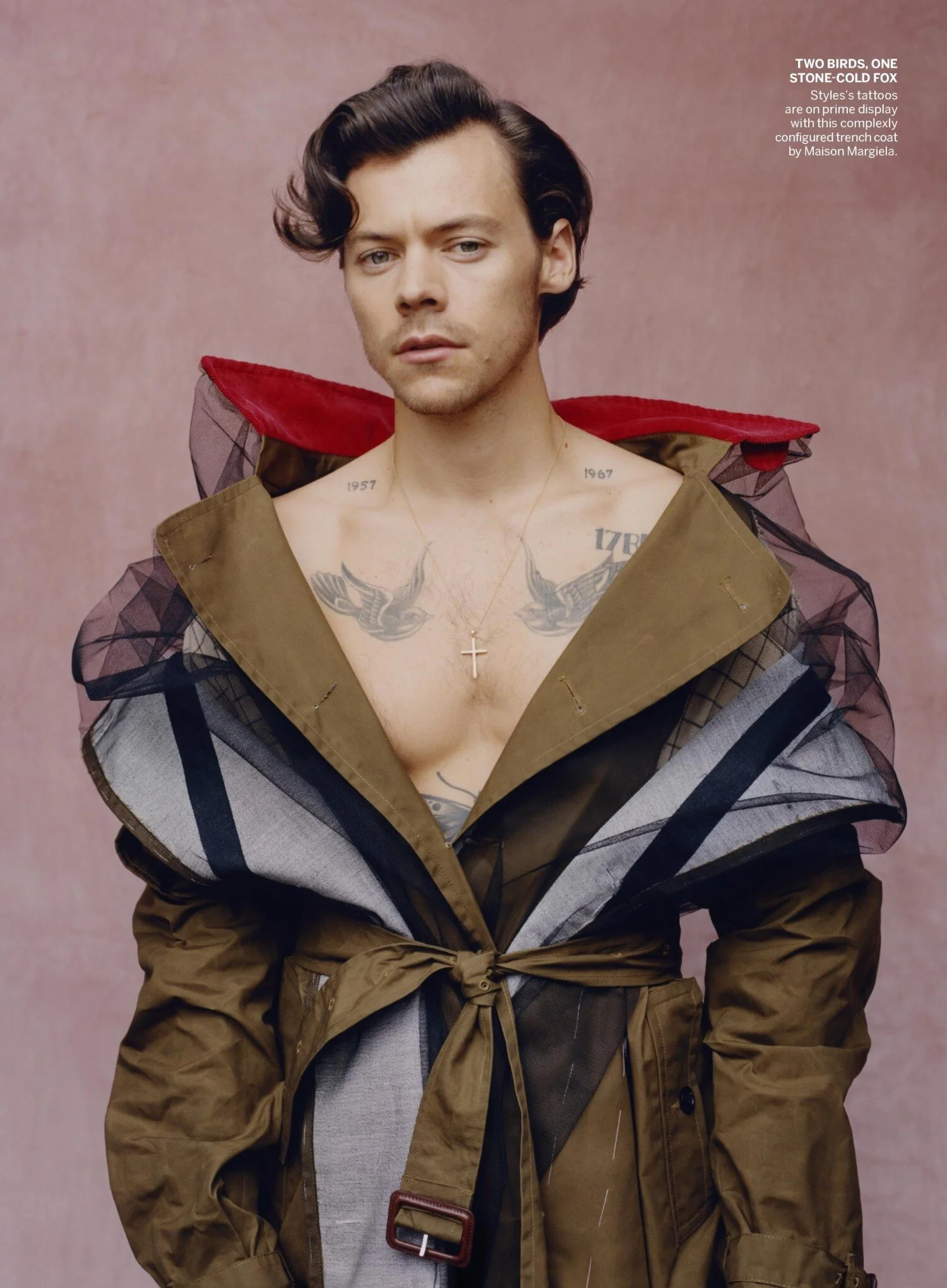 “Clothes are there to have fun with and experiment with and play with. What’s really exciting is that all of these lines are just kind of crumbling away,” Styles says. “There’s so much joy to be had in playing with clothes. I’ve never really thought too much about what it means—it just becomes this extended part of creating something.”