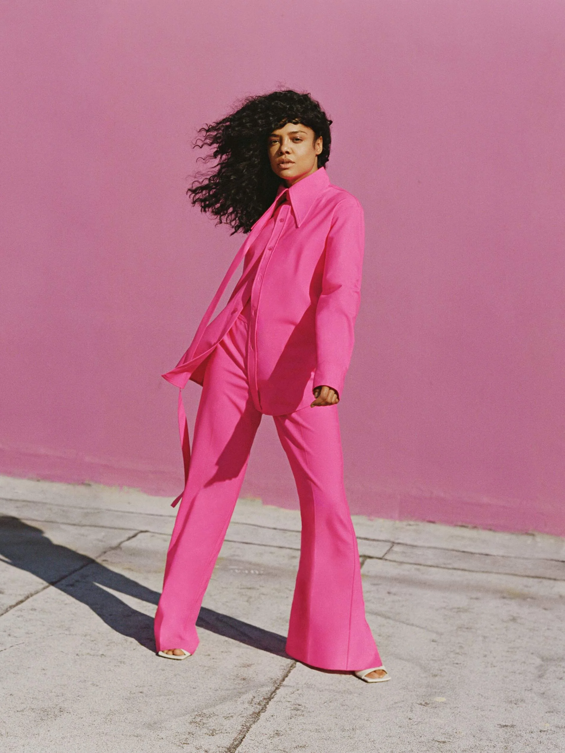 Continue the read-out of Lynette Nylander’s interview of Tessa Thompson and see the fashion credits at Porter Edit.