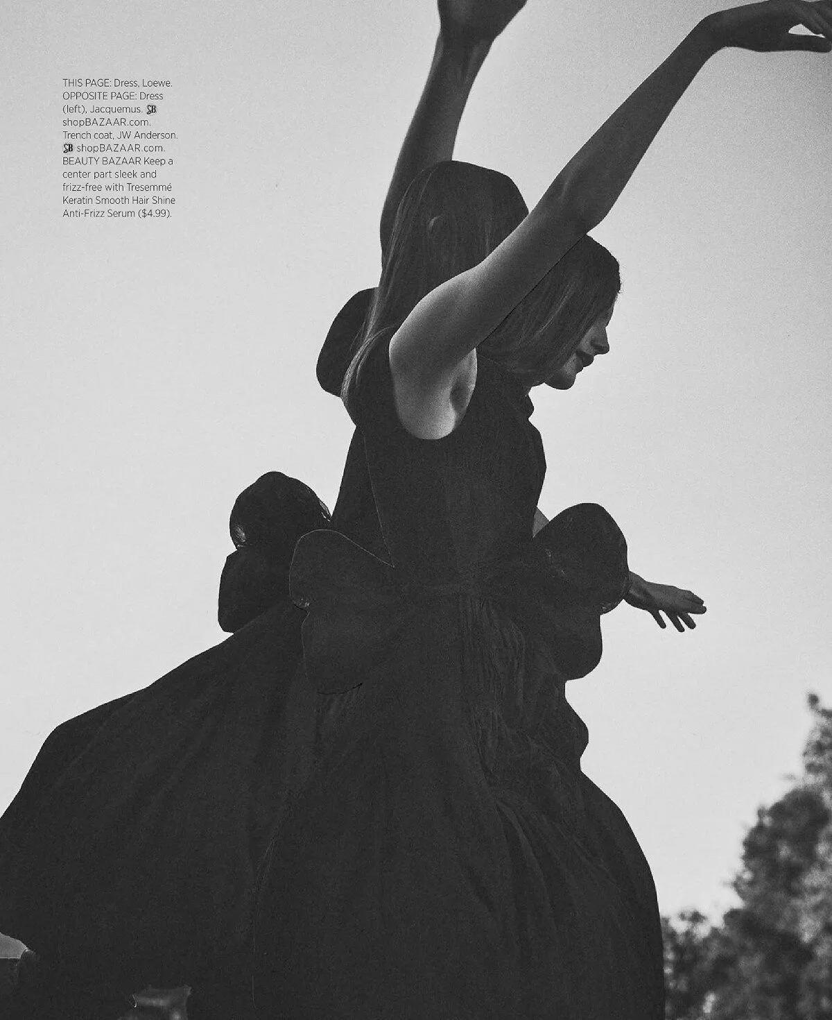 /Models Amrit and Signe Veiteberg are styled by Ludivine Poiblanc in ‘Shape Shifting’, a fashion story of utilitarian-inspired, monastic silhouettes pared with sensual underlayers. Photographer Annemarieke Van Drimmelen [IG] is behind the lens for Harper’s Bazaar US February 2021./ Hair by Benjamin Muller; makeup by Adrien Pinault