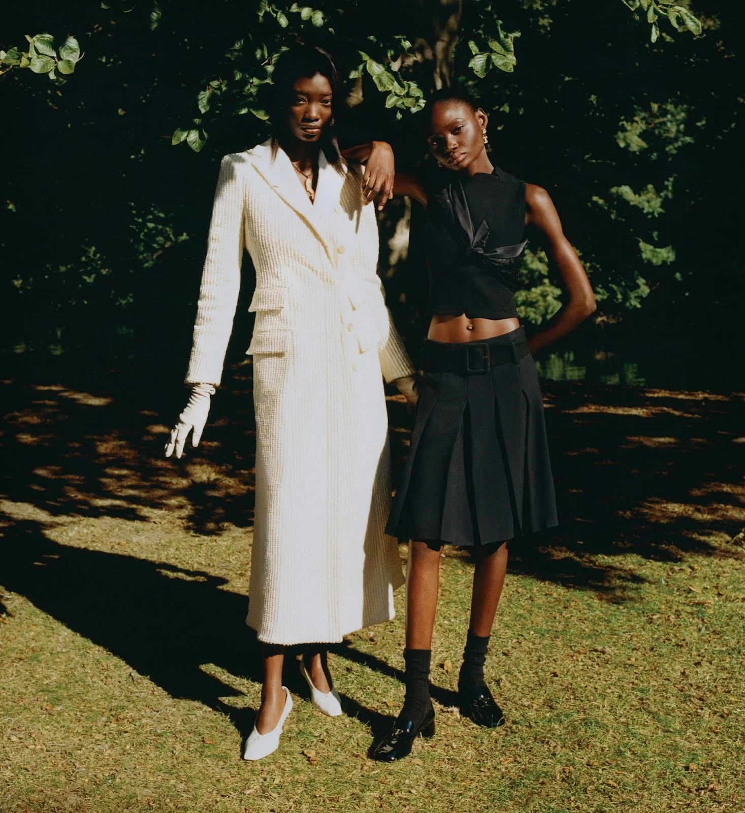 /Brooklyn and London-based photographer Jeano Edwards [IG] and stylist Chloe Grace Press raise the bar on what defines a market report, packing up models Ajayi Temitope and Baba Chogwu and heading for the gardens of the Monkey Island Estate hotel. WSJ Magazine’s November 2021 issue is not playing at fashion dress-up — not even in a standard market report. A little muscle-flexing, perhaps?