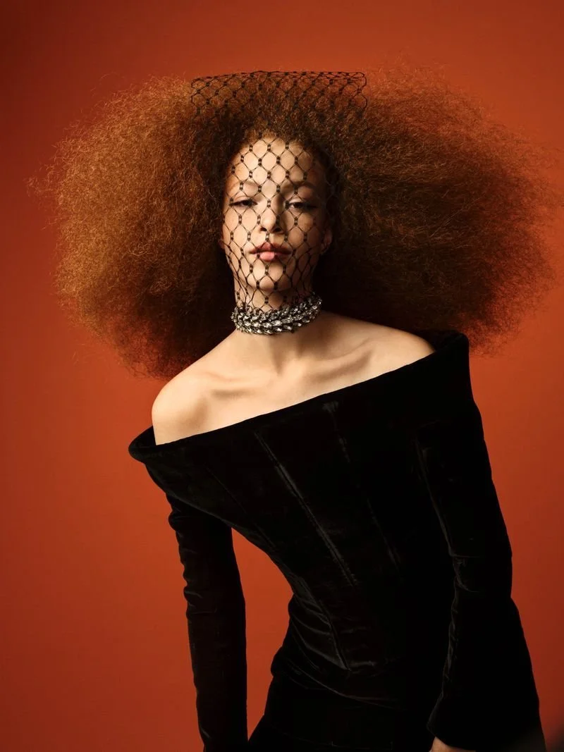 In these mages, Tianna St. Louis is lensed by Johan Sandberg [IG] with styling by Nicholas Georgiou for the December 2021 issue of Vogue Greece. / Hair by Jacob Kajrup; makeup by Eny Whitehead