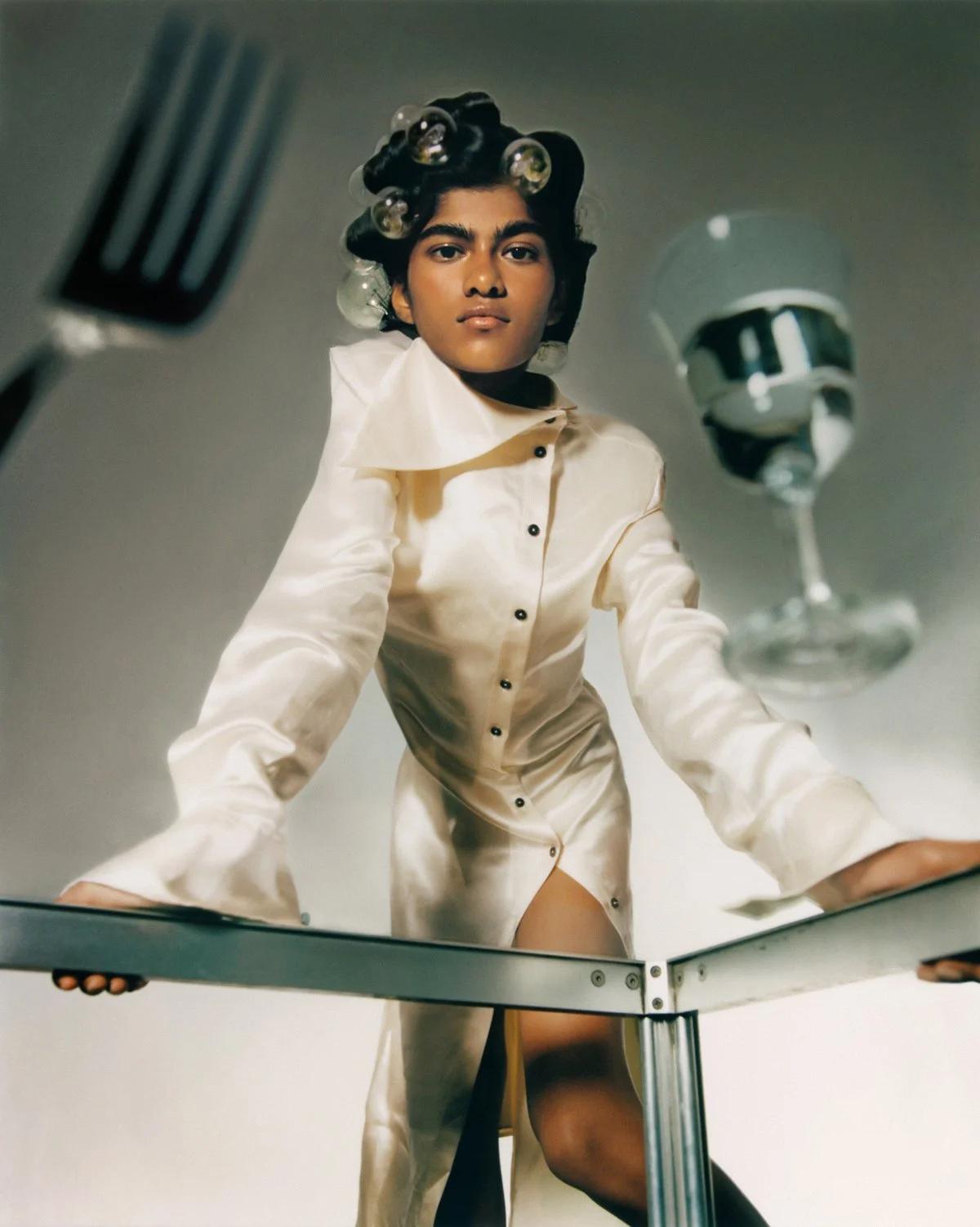 /French Indian model Ashley Radjarame wears Hugo Boss on the November cover of Vogue Ukarine. Photographer Dan Beleiu [IG] captures Radjarame, styled by Marquet Lee in ‘Whimsical’./ Hair by Michal Bielecki; makeup by Aurore Gibrien