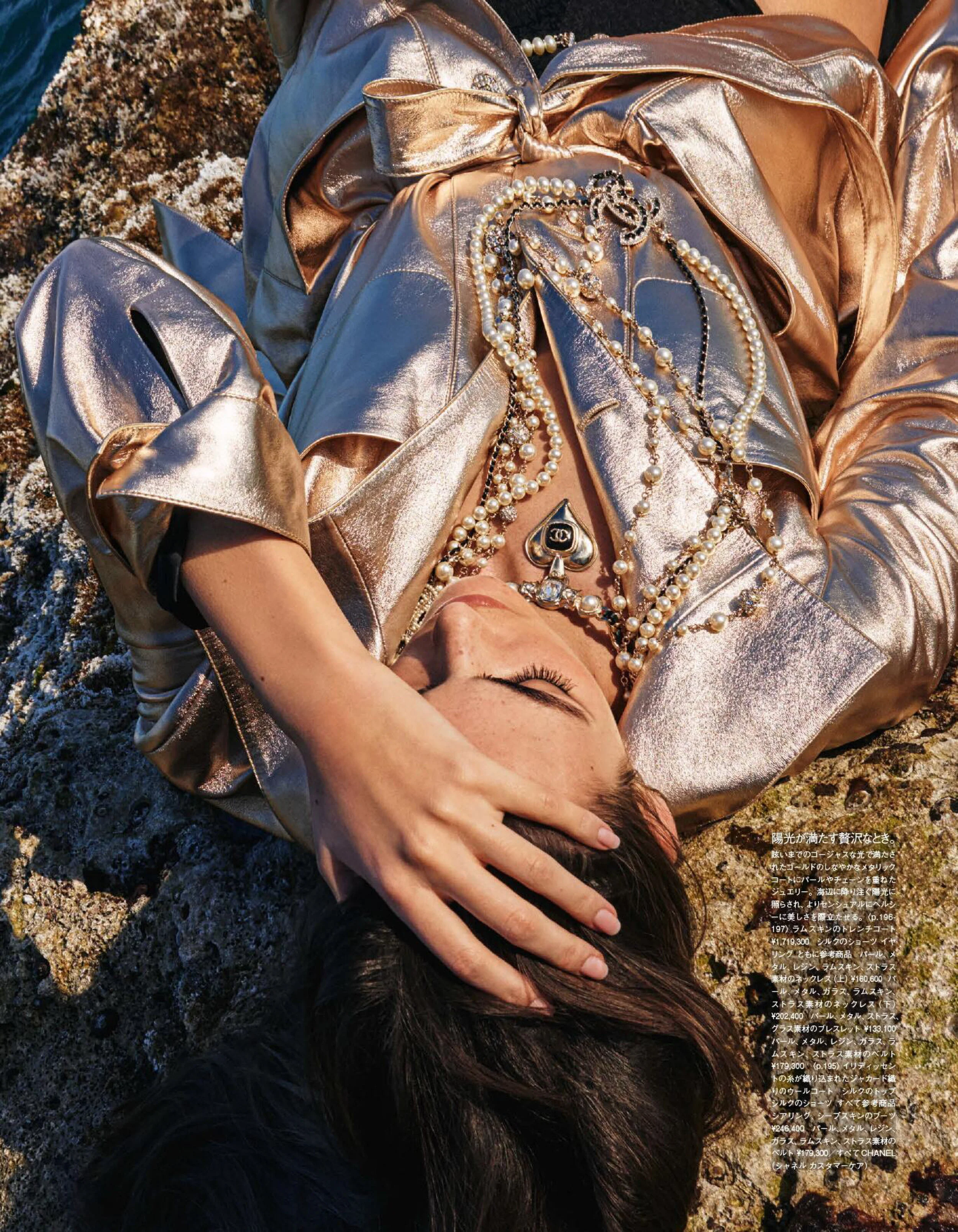 /Top model Vittoria Ceretti ditches her golden riches, couture extravagance and pares down her style for a second fashion story in Vogue Japan’s July 2021 issue. Anna Dello Russo styles Ceretti in ‘Call Her Name’, sea goddess images lensed by Luigi & Iango [IG]./ Makeup by Georgi Sandev; hair by Luigi Murenu