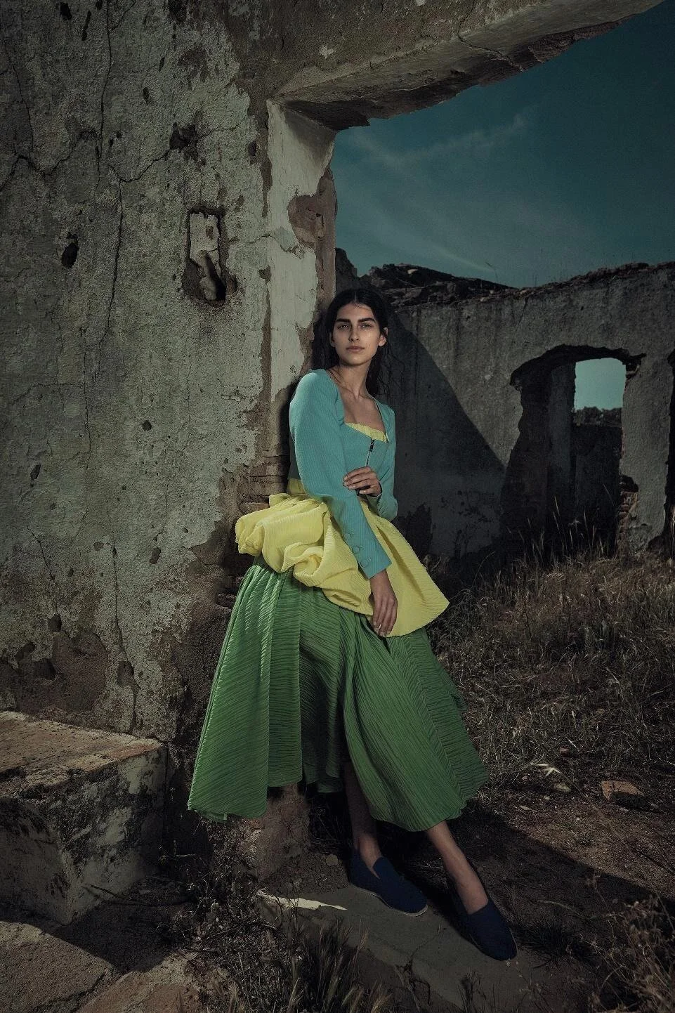 In 2021 Saffron Vadher finds herself in a slower-pace place — Seville, Andalucia, Spain. Samuel Francois styles Vadher in ‘La Soledad’ (place of loneliness) lensed by Sofia Sanchez and Mauro Mongiello [IG] for Numero Magazine #223 Summer 2021./ Hair by Kazue Deki; makeup by Lloyd Simmonds