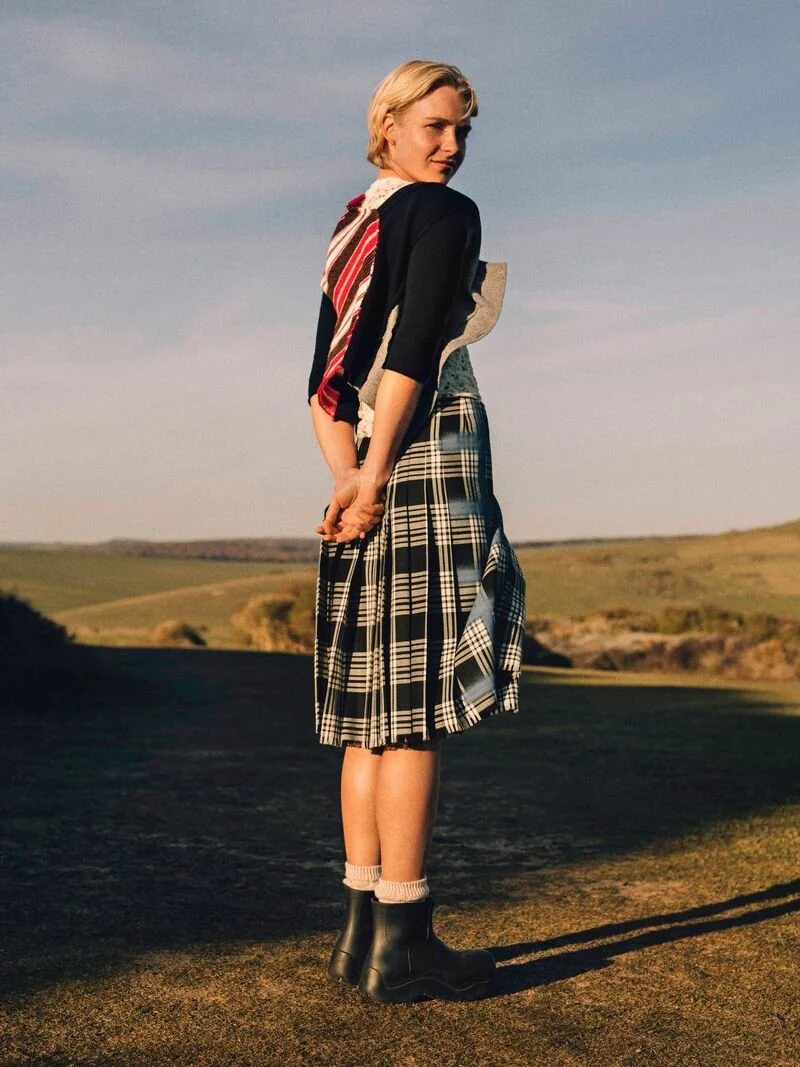 Model Steffi Cook is styled by Morgan Pilcher in a fashionable look at Matches Fashion July, lensed by Robbie Lawrence [IG]./ Makeup by Erin Green; hair by Sarah Jo Palmer