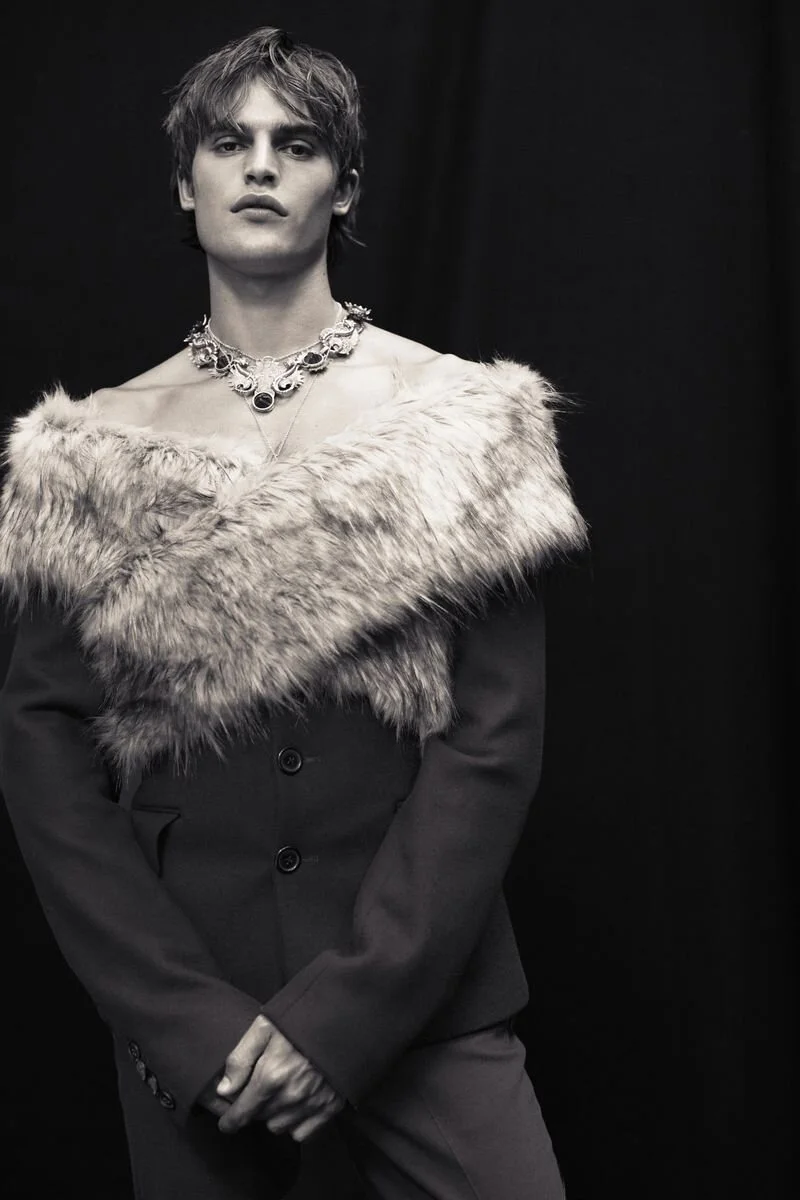 The shoot is a powerful tribute to the resilience and power of royalty, calling back to the romance of renaissance paintings."We made the poses very static to reference the posing style of old paintings," said Latour-Lambert, in reference to the way they've decided to interpret the clothing and the models' character. "The mood board was suggested by Gro [Curtis] and is revolving around renaissance paintings mixed with medieval elements," said Latour-Lambert.