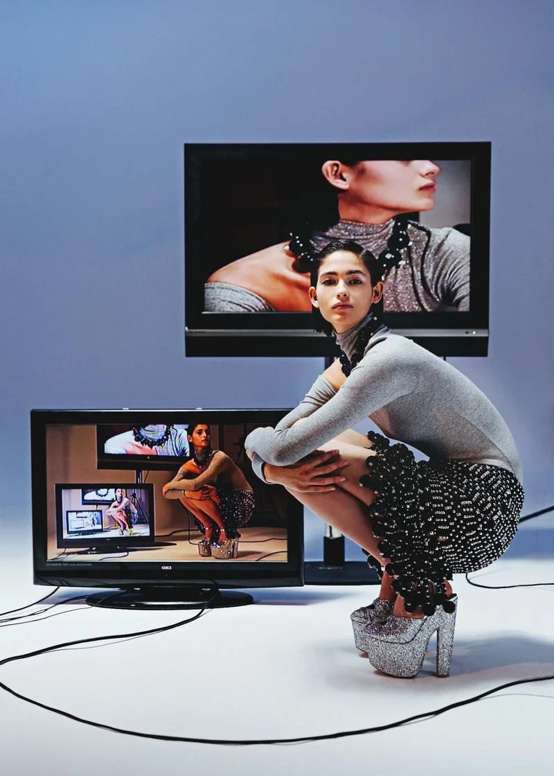 /Photographer Ana Abril [IG] captures a modern lovely with no name in ‘Metaverse’, styled by Caterina Ospina Buitrago for Mujer Hoy October 2022. The photographer’s assistant is credited, and the stylist’s assistant. But the primary image in the fashion story is unnamed and we are braindead in this moment. If you know it, let me know. / Makeup Antonio Romero