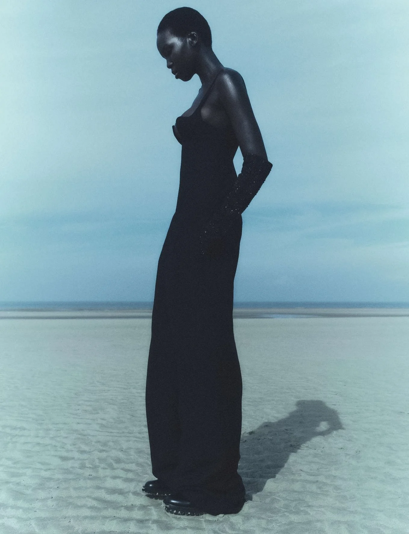 Ajok Madel Is Pensive in Le Touquet by Yulia Gorbachenko for Numero 233 October 2022