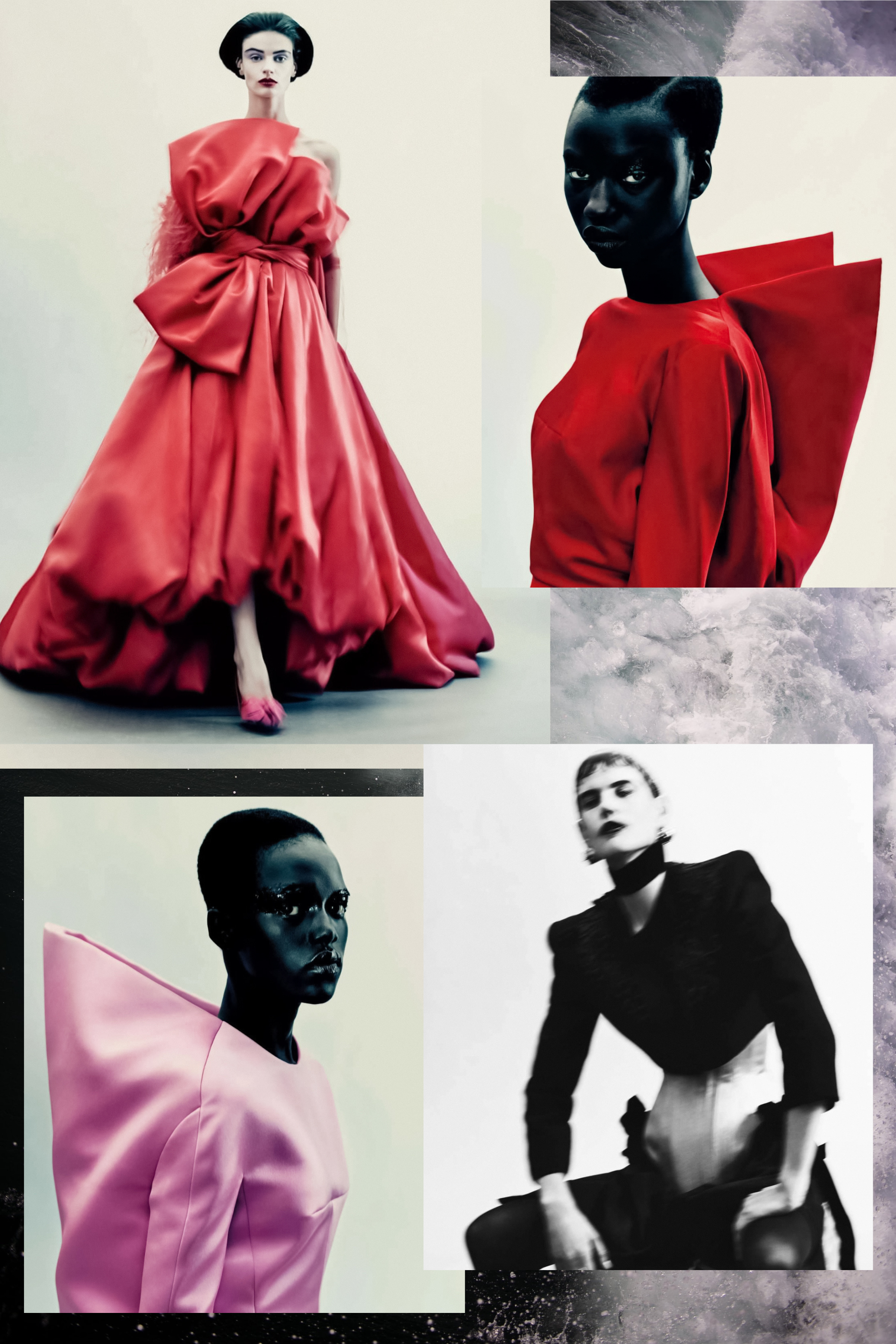 /Models Alaato Jazyper, Anyiang Yak, Mila Van Eeten and Saskia de Brauw wear fall couture, styled by Jacob K. Paolo Roversi [IG] is in the studio, shooting Balenciaga, Dior, Maison Valentino, Victor & Rolf for de la Repubblica [IG] October 1, 2022./ Hair by Eugene Souleiman; makeup by Lucy Bridge
