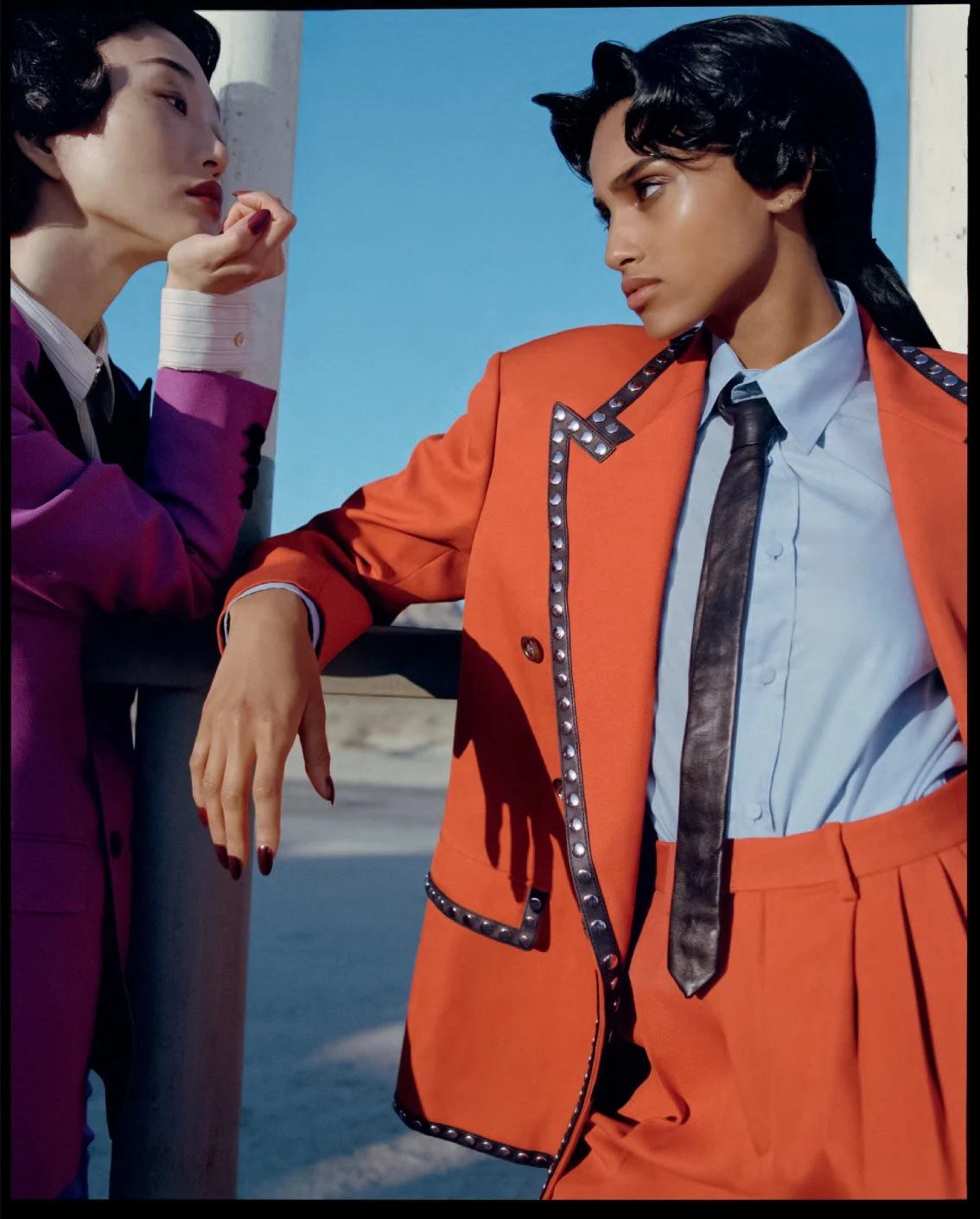 /British Vogue’s October 2022 issue features models Bela Salazar, Eloise Wong, Imaan Hammam, Lucia De La Garza, Mila De La Garza and Sora Choi in ‘Nowstalgia’. Photographer Nadine Ijewere [IG] captures the sextet styled by Gabriella Karefa-Johnson.