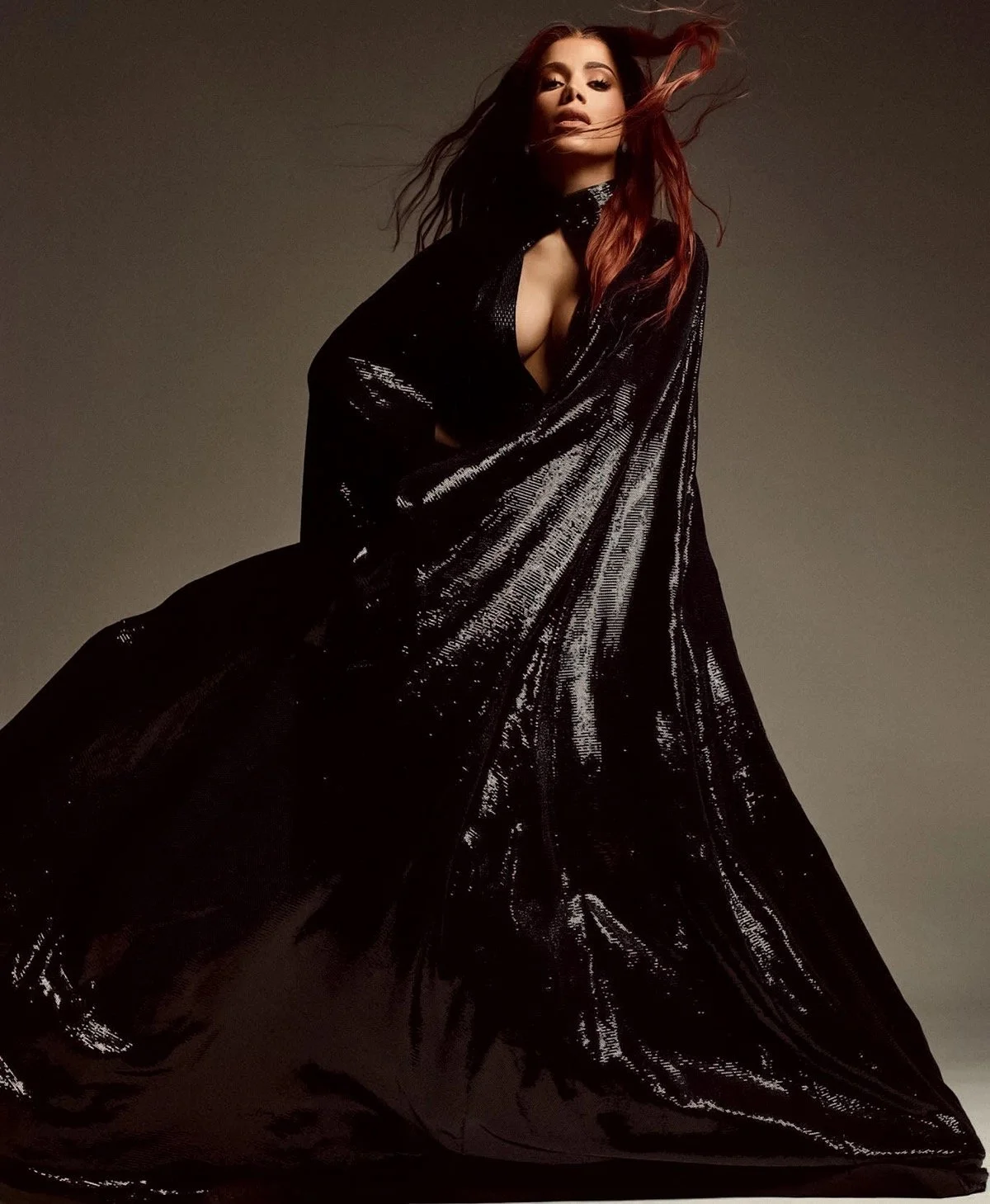 In her WSJ Magazine photoshoot and interview How Anitta Made ‘Evolver’ and Took Over the World’ with Myles Tanzer, the Brazilian pop star makes a dramatic appearance, wearing a Ralph Lauren Collection cape and dress on the cover, accessorized with Van Cleef & Arpels earrings.