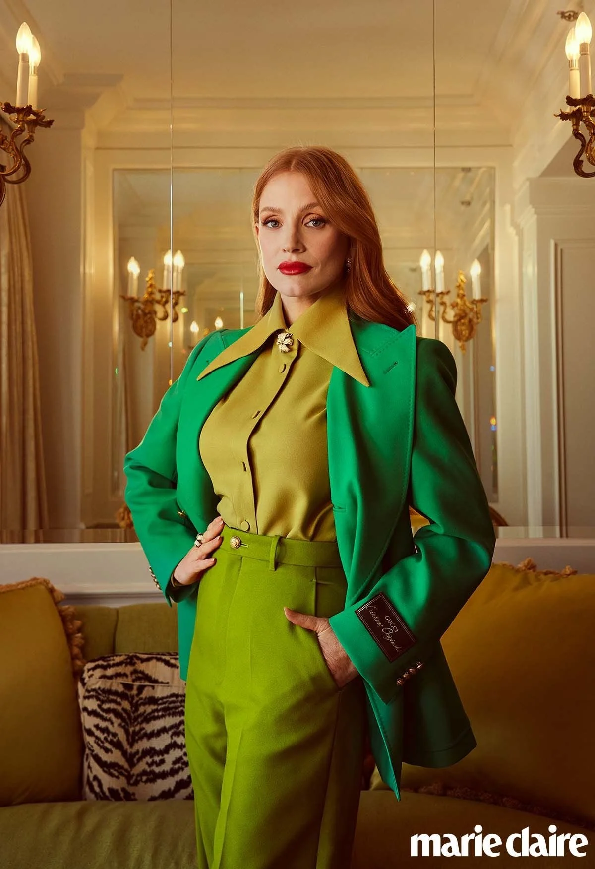 Jessica Chastain is styled by Elizabeth Stewart in fashion from Dsquared2, Erdem, Gucci, Michael Kors collection, Philosophy di Lorenzo Serafini, Polo Ralph Lauren, Victoria Beckham and more. Jessica Chou [IG] is behind these rich images. See Marie Claire for the fashion credits.