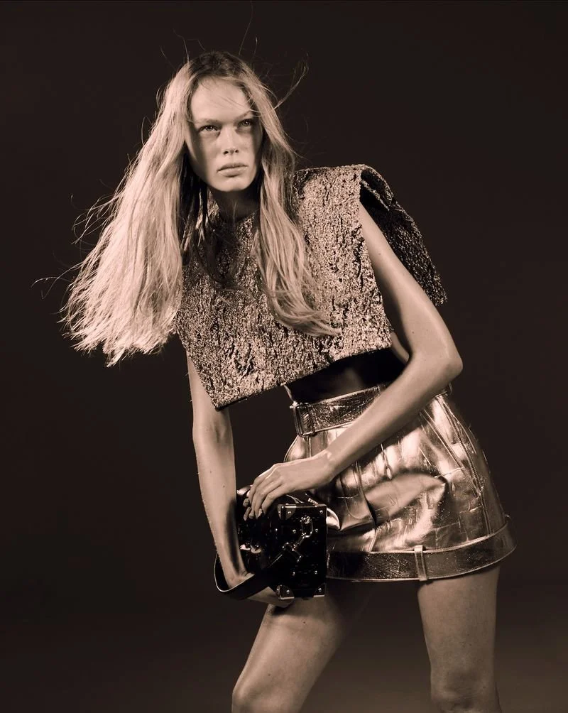 /Rising German model Franziska Jetzek walked the Louis Vuitton SS2023 show, appearing here in an all-Vuitton fashion story minus the massive zippers that dominate the spring 2023 collection. They are the largest zippers ever manufactured.