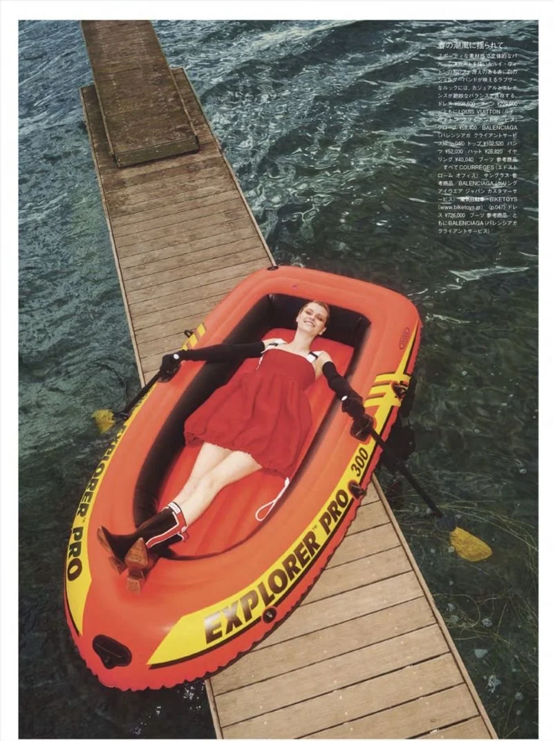 Vogue Japan's Spring 2022 style overview with model in an orange boat papaya style
