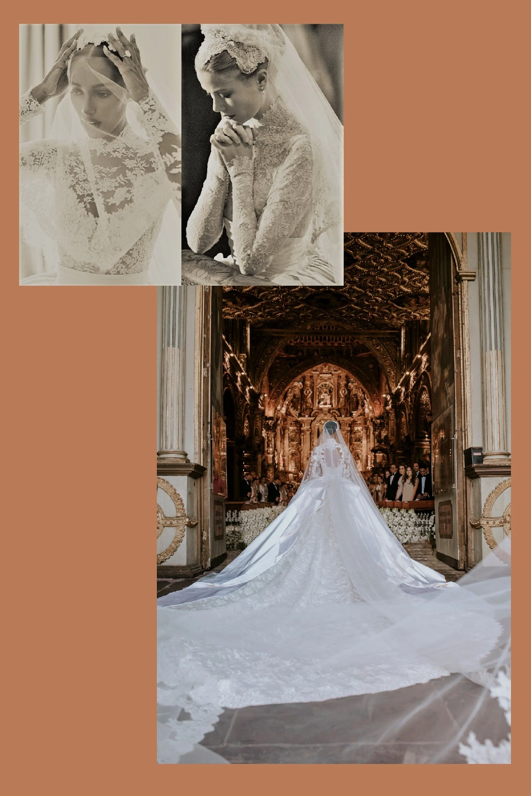 Jasmine Tookes wedding day via Ritani IG; Grace Kelley wedding day via; Jasmine Tookes entering the Catholic Church in the heart of Quito [Ecuador] wearing her wedding dress by Zuhair Murad via Vogue.