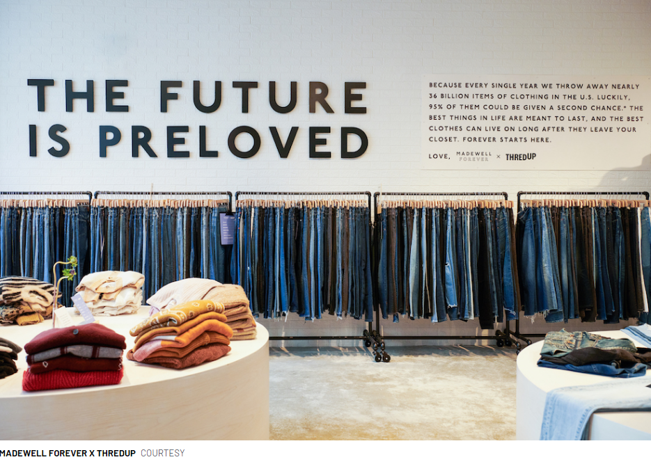 I note that the recycled, upcycled, remade and reworked aspect of Bode’s collections is a bullseye for a rapidly increasing consciousness around old-school, varsity dressing. Rivet calls it: “Old-meets-new merchandising”, and their example is Madewell’s turn in your old jeans program. H&M is also promoting dropping off your old clothes. We talk frequently about this activists-driven change of how we treat old apparel and also favorite fashion needing repair.