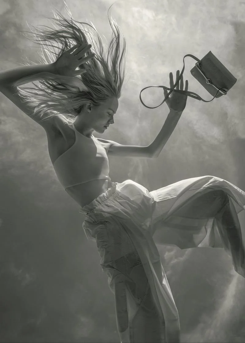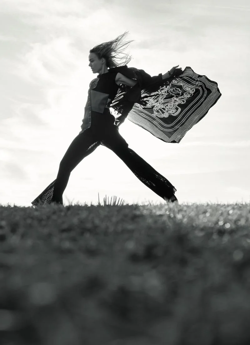 /Model Kiki Willems is styled by Brian Molloy in ‘Zephyr’ [a soft gentle breeze], spring women’s fashion from Le Monde d'Hermes, lensed by Alain Laboile [IG].