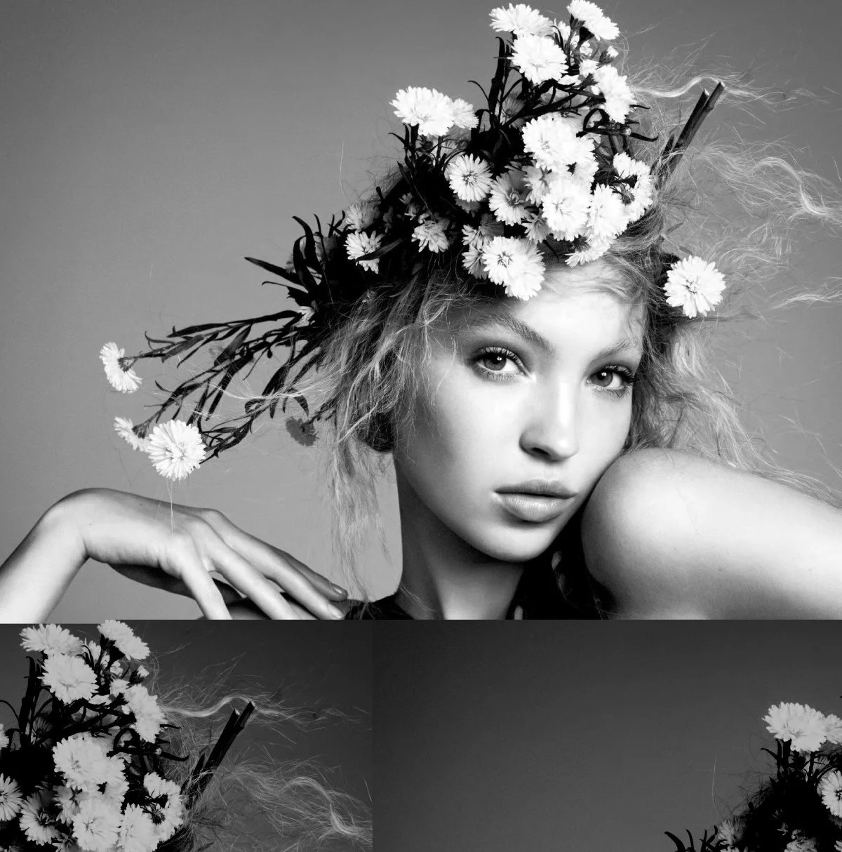 “There was no preconceived idea of how the hair should look, it was more instinctively responding to how she looked and acted in the clothes. We wanted to capture her quirky irreverence.” The result was a handful of different looks. In some images, Lila sports long wavy Pre-Raphaelite locks, which Guido created with added hair extensions. “It’s wild and it’s natural,” he muses.
