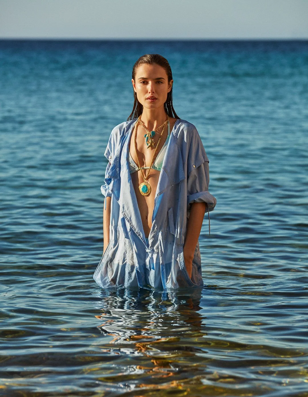 /Spanish model Blanca Padilla is styled by Bárbara Garralda & Sylvia Montoliu in a sea and earth-honoring fashion story lensed by Rafa Gallar [IG] for ELLE Espana’s June 2022 issue.