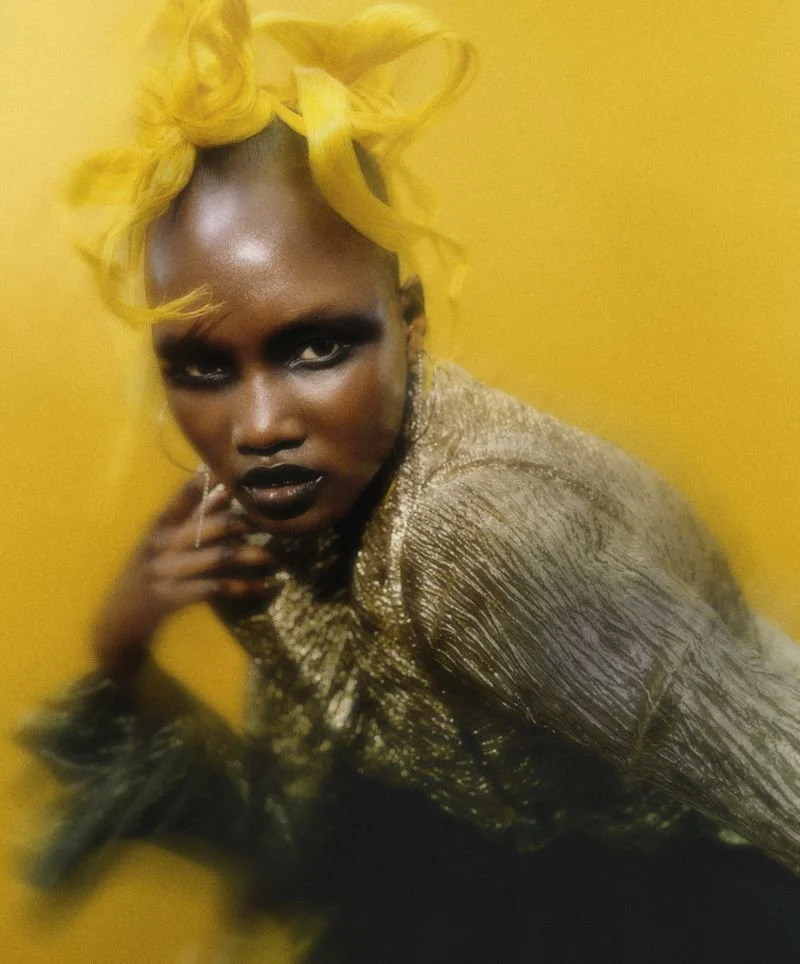 In July 2022, we find Nhial in the pages of Vogue Portugal, styled by Kingsley Tao in images by Max vom Hofe [IG]. / Hair by Moe Mukai; makeup by Lynski