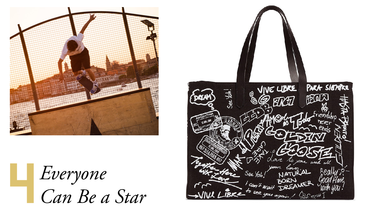 Golden Goose places a huge emphasis on “things that are lived in, distressed, and touched with life”. The brand emphasizes a lived-in vibe, but the products themselves have a cool, contemporary sensibility. The founders draw inspiration from art and their native city of Venice.
