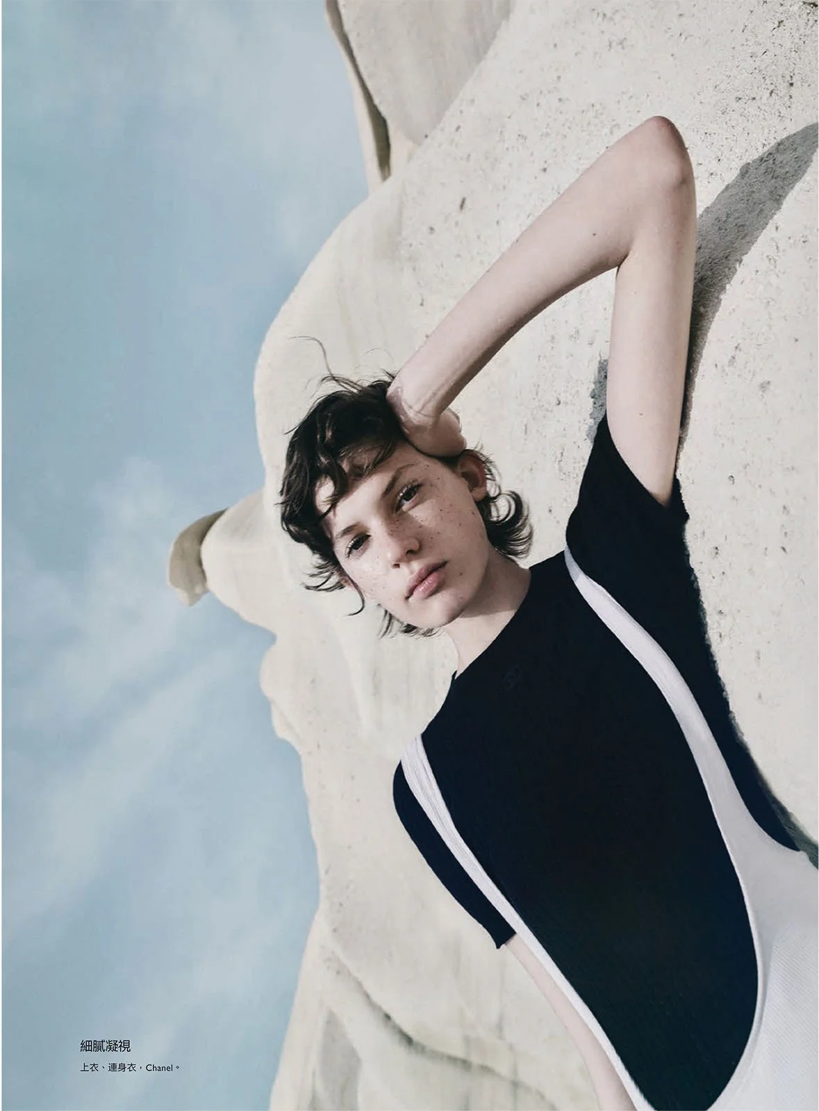 /Model Kristy Ponomar is styled by Sandy Armeni in hot weather athletic pieces in a fashion story ‘In the Breeze’, lensed by Yulia Gorbachenko [IG] for Harper’s Bazaar Taiwan August 2022.