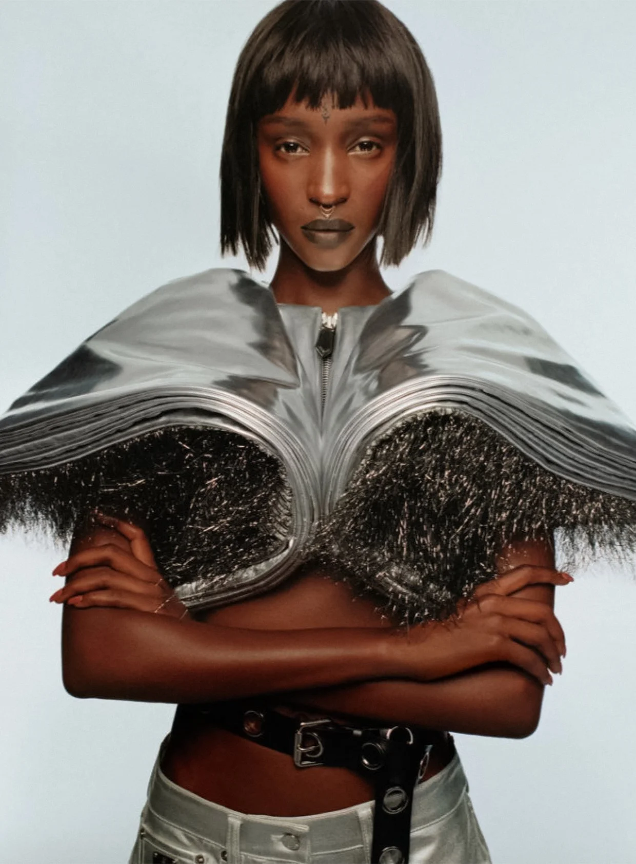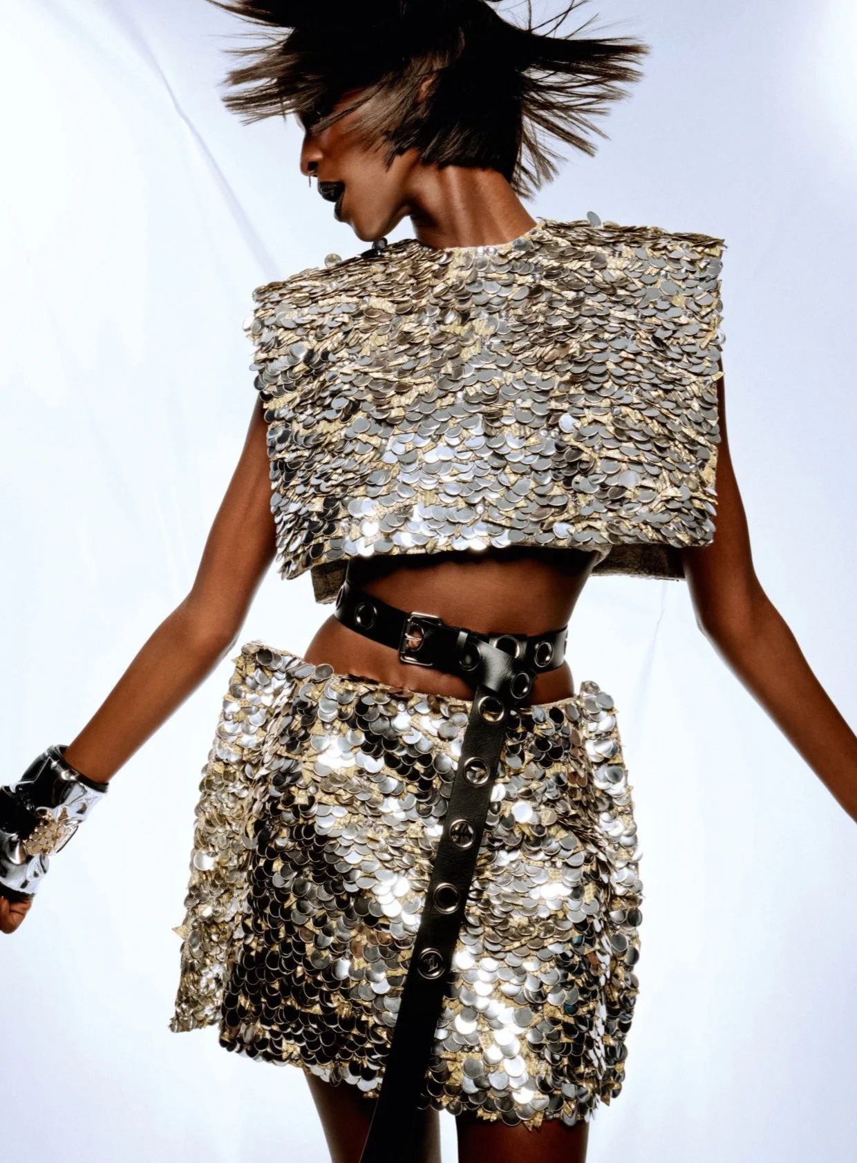The musical talent is styled by Vanessa Reid in glittering, futuristic fashion suitable for a 21st century muse. Fashion photographer Anthony Seklaoui [IG] is on the set./ Hair stylist Pierre Saint Sever, makeup by Aurore Gibrien