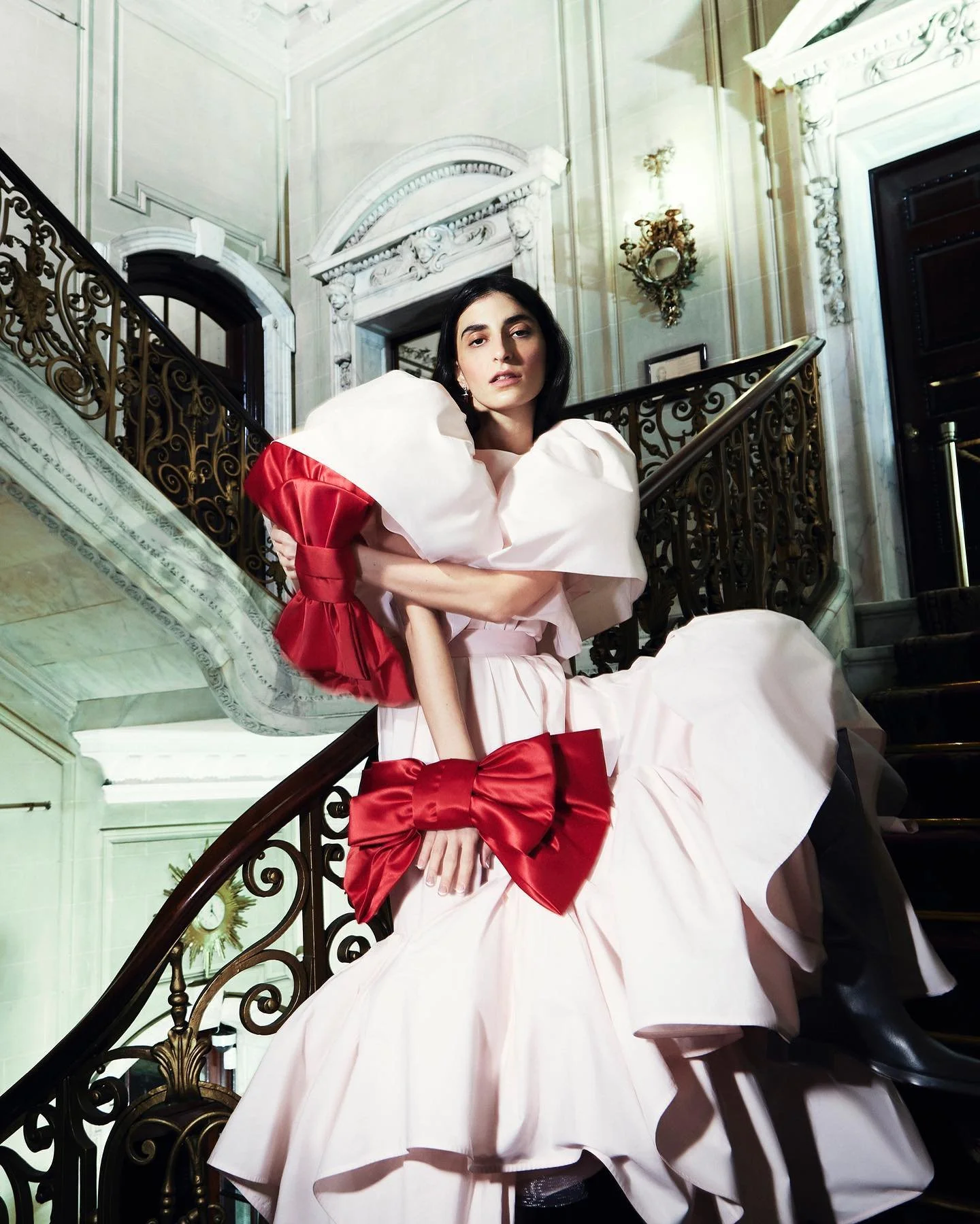 /London-based, Atherns-born model and journalist Nassia Matsa poses in ‘The Social Season’, elegant finery styled by fashion editor Natalie Westernoff. Photographer Rachell Smith [IG] is behind the lens for Vogue Arabia January 2023.