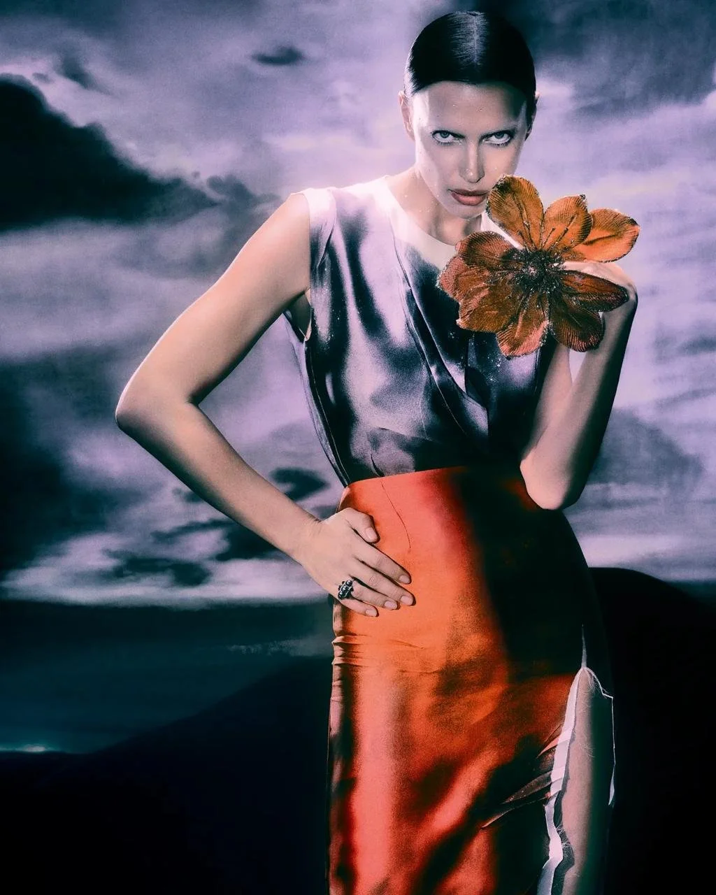 Irreverence and rebellion are center stage in the new issue, with Shayk wearing Louis Vuitton on the cover, styled by Poppy Kain. Elizaveta Porodina [IG]brings her signature lens to the fashion story that expresses the many levels of psychological awareness required for women to feel comfortable in their own skin./ Makeup by Isamaya Ffrench; hair by Claire Moore