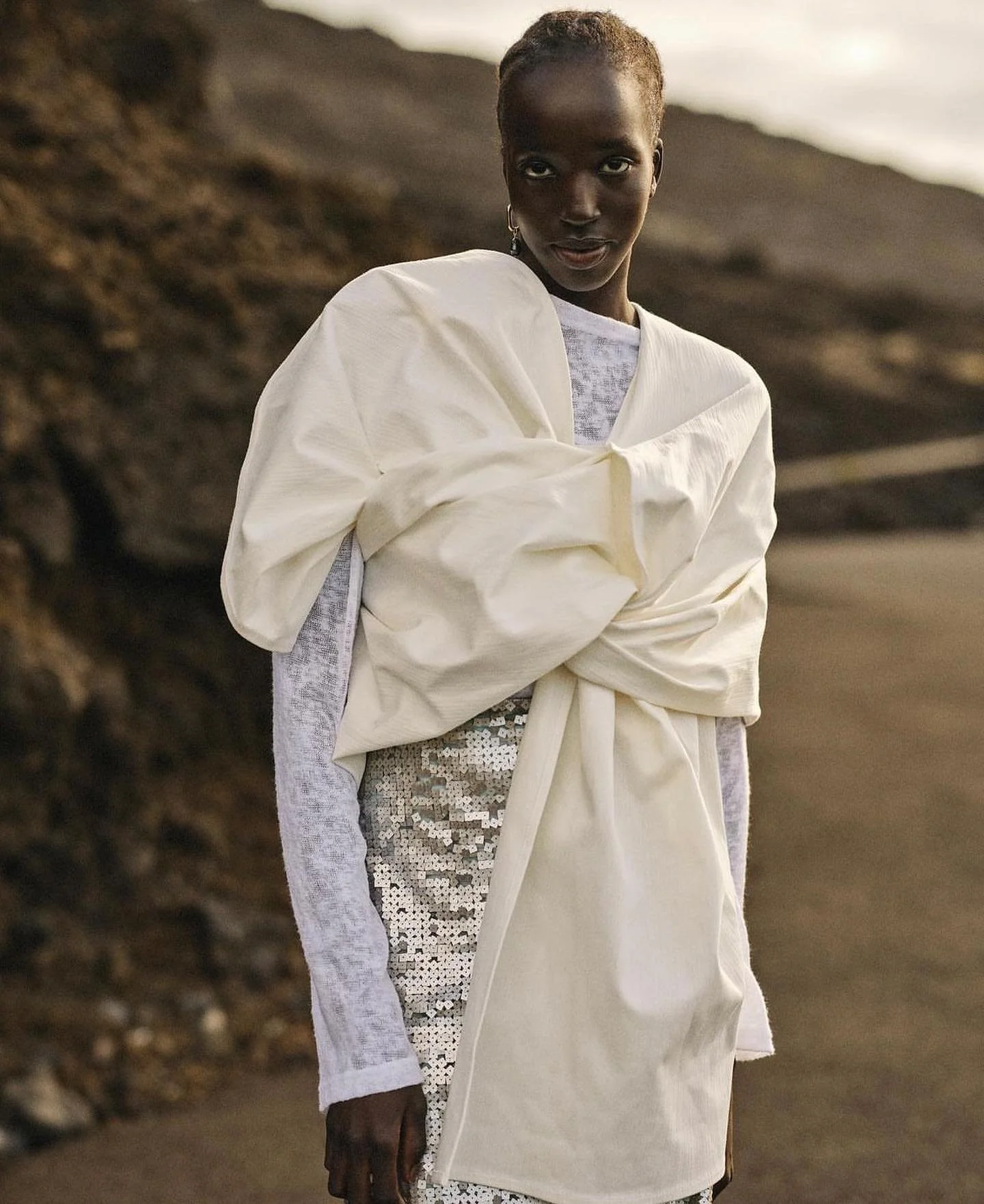 /South Sudanese, London-raised, British model Nyaueth Riam is styled by Alba Roces in ‘And There Was Light’ [Y Se Hizo La Luz]. Photographer Wai Lin Tse [IG] captures Riam for Vogue España January 2023./ Hair and makeup by Adrian Rux