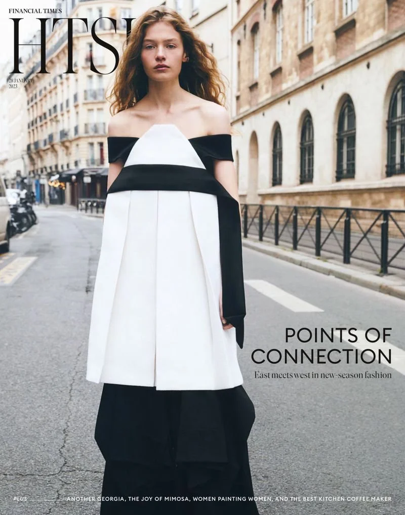 /Model Ella Mccutchdon poses in fashion inspired by architectural silhouettes and ‘80s minimalism, imbued with a monastic vibe. Isabelle Kountoure styles ‘East Meets West’ in luxury layers from Alaïa, Bottega Veneta, Dior, Dolce & Gabbana, Dries Van Noten, Jil Sander by Lucie & Luke Meier, Meta Campania Collective, Michael Kors, Prada, Rokh, Ulla Johnson, Uma Wang and more.