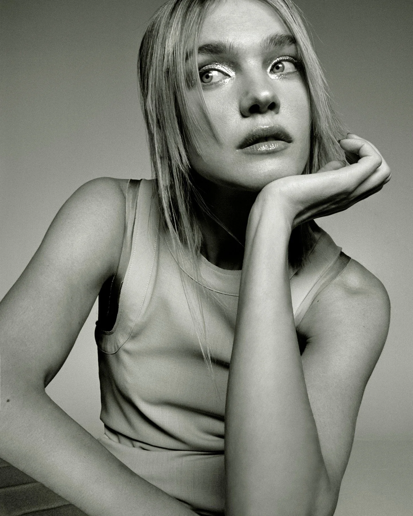 /Supermodel Natalia Vodianova covers Vogue Beauty Paper, January 2023, a media project of Vogue China. Natalia is styled by Michelle Cameron, with creative direction by Matt Mcdonald. Photographer Hugo Comte [IG] is in the studio./ Hair by Yuji Okuda; makeup by Aurore Gibrien