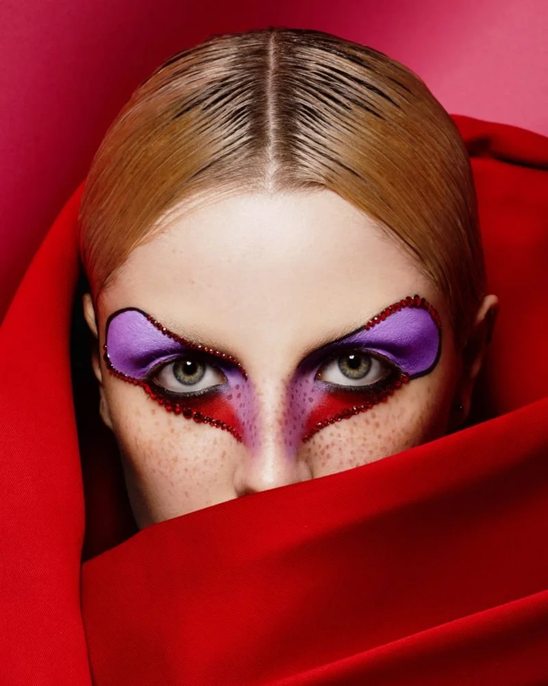 Vogue Portugal January 2023 issue creates a gasp or two with this beauty cover story ‘Red Velvet & Purple Rain’. Pablo Patane styles the story starring makeup artist Elise Ducrot [IG] with fabulous images by Jabe [IG].