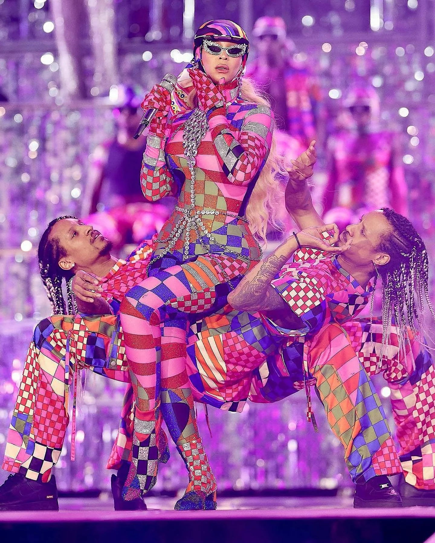 Note that her dancers are also wearing Pucci. I just checked Beyonce’s IG and the likes on this outfit were also identical to her Versace outfit likes — about 1,650m. Scrolling all the way back to spring, it looks to be in the top 5 on the whole tour. There’s maybe 10 outfits in the 1.5m range.