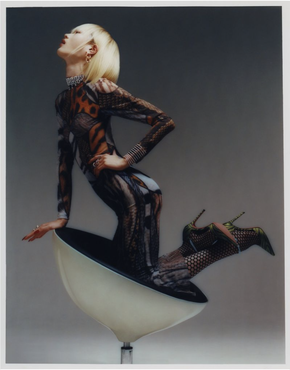 Model Chloe Oh confirms her ‘Super Pop’ status, styled in showgirl fashion by Alicia Padrón. Photographer Javier Castán captures Chloe’s eclectic side of style expression for Vogue España October 2023. / Hair by Fernando Torrent