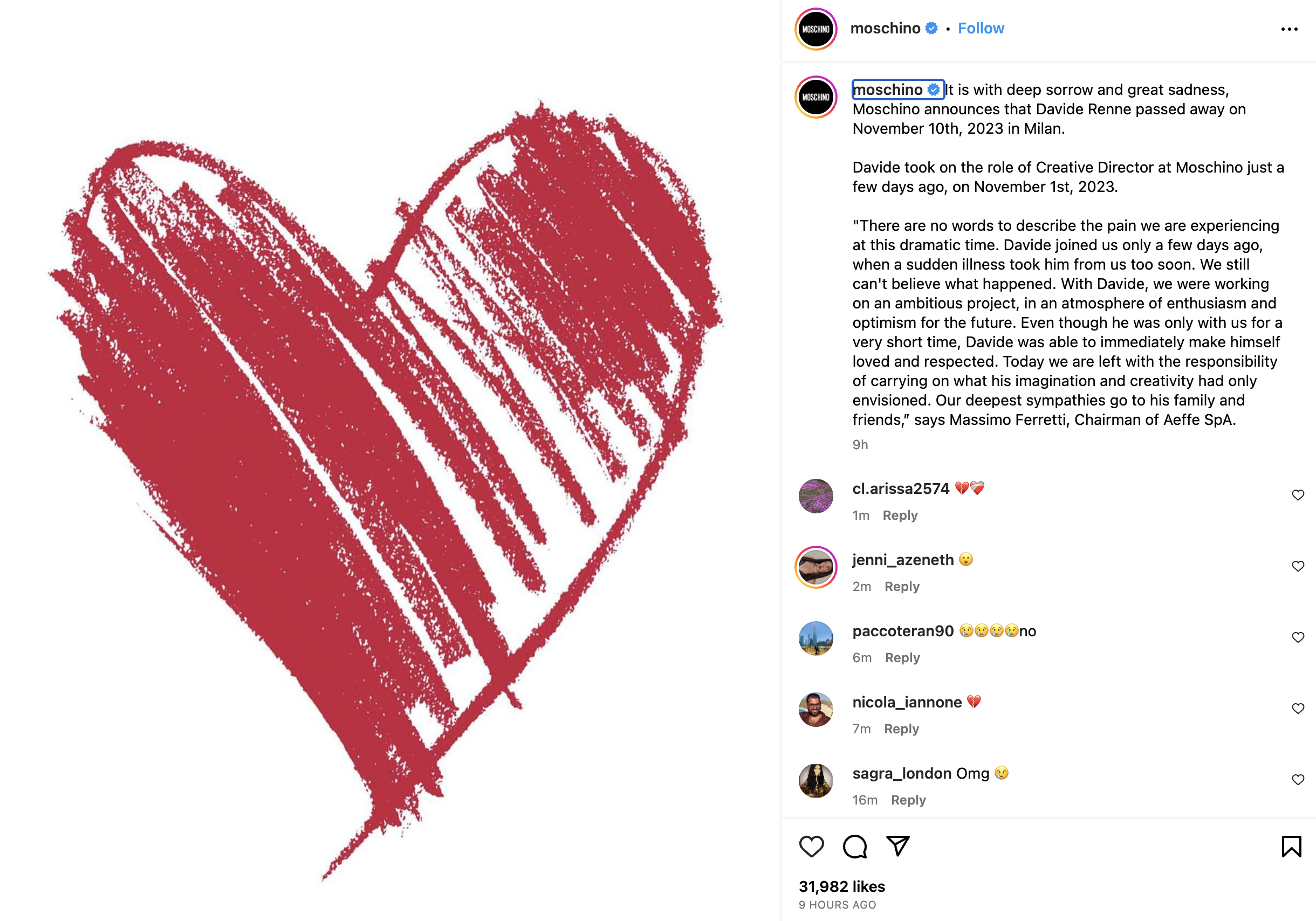 A Stunning Loss for Moschino and Luxury Brands with Heart: Davide Renne Leaves Our Earth