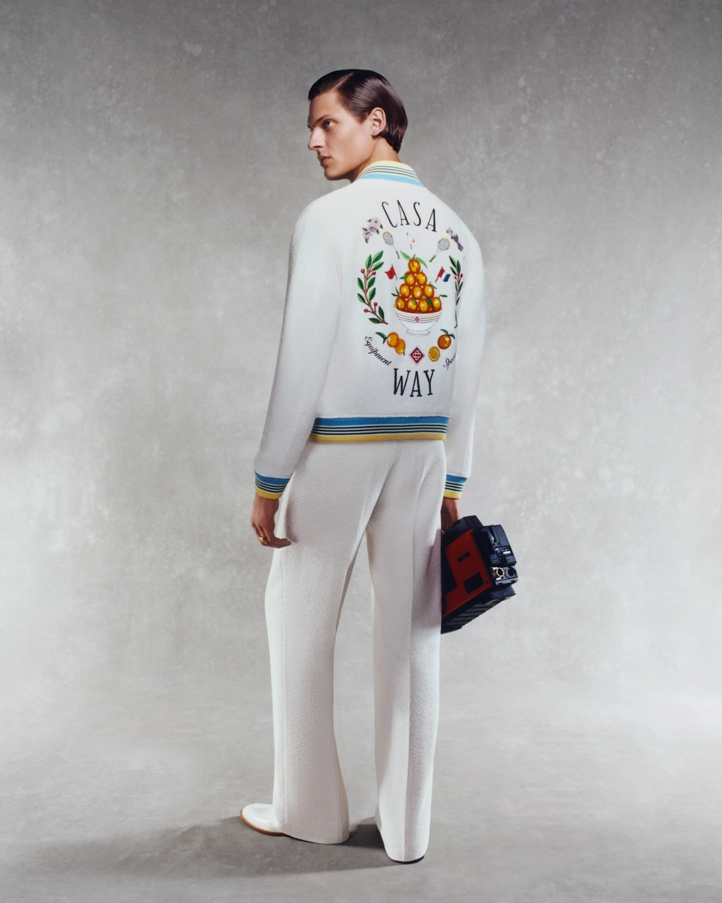 /Charaf Tajer‘s pre-Spring 2024 Casablanca Campaign makes a sophisticated play for a monied, athletic elegance and varsity chic-inspired cafe-society crowd.