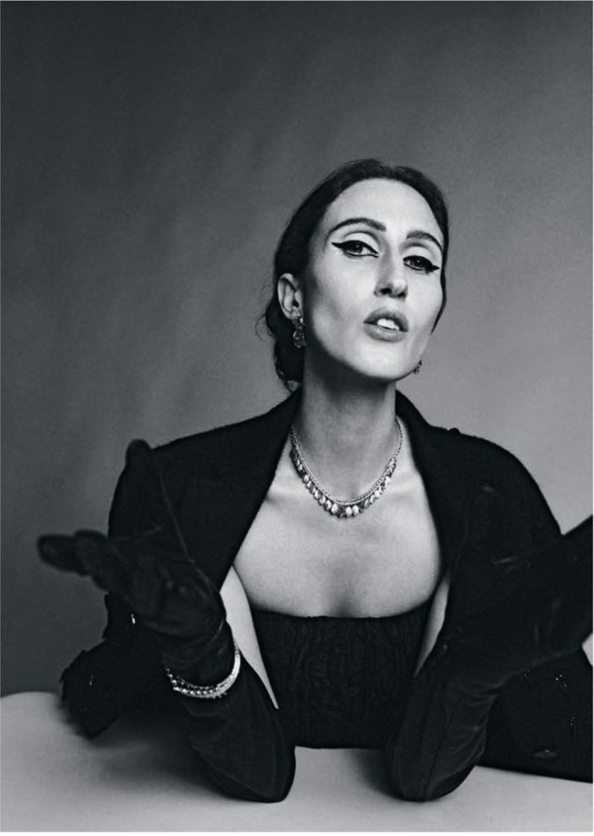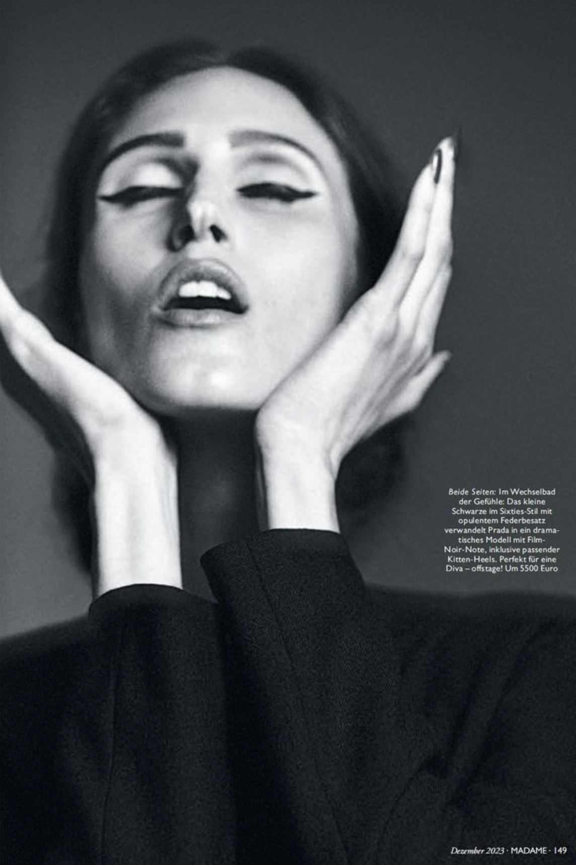 In these images, Cleveland is styled by Konstantin Spachis in ‘Madame Callas’. Photographer Adriano Russo [IG] is behind the lens for Madame Germany [IG] December 2023. / Hair by Simone Prusso; makeup by Anna Maria Negri