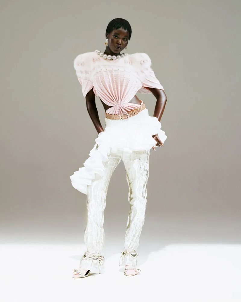 / Anne EnkeSupermodel Adut Akech graces the pages of POP Magazine #48, styled by Tamara Rothstein. Photographer Arnaud Lajeuneie [IG] is behind the lens, capturing a modern style approach to sexy, frothy femininity./ Hair by Kim Rance; makeup by Vassilis Theotokis