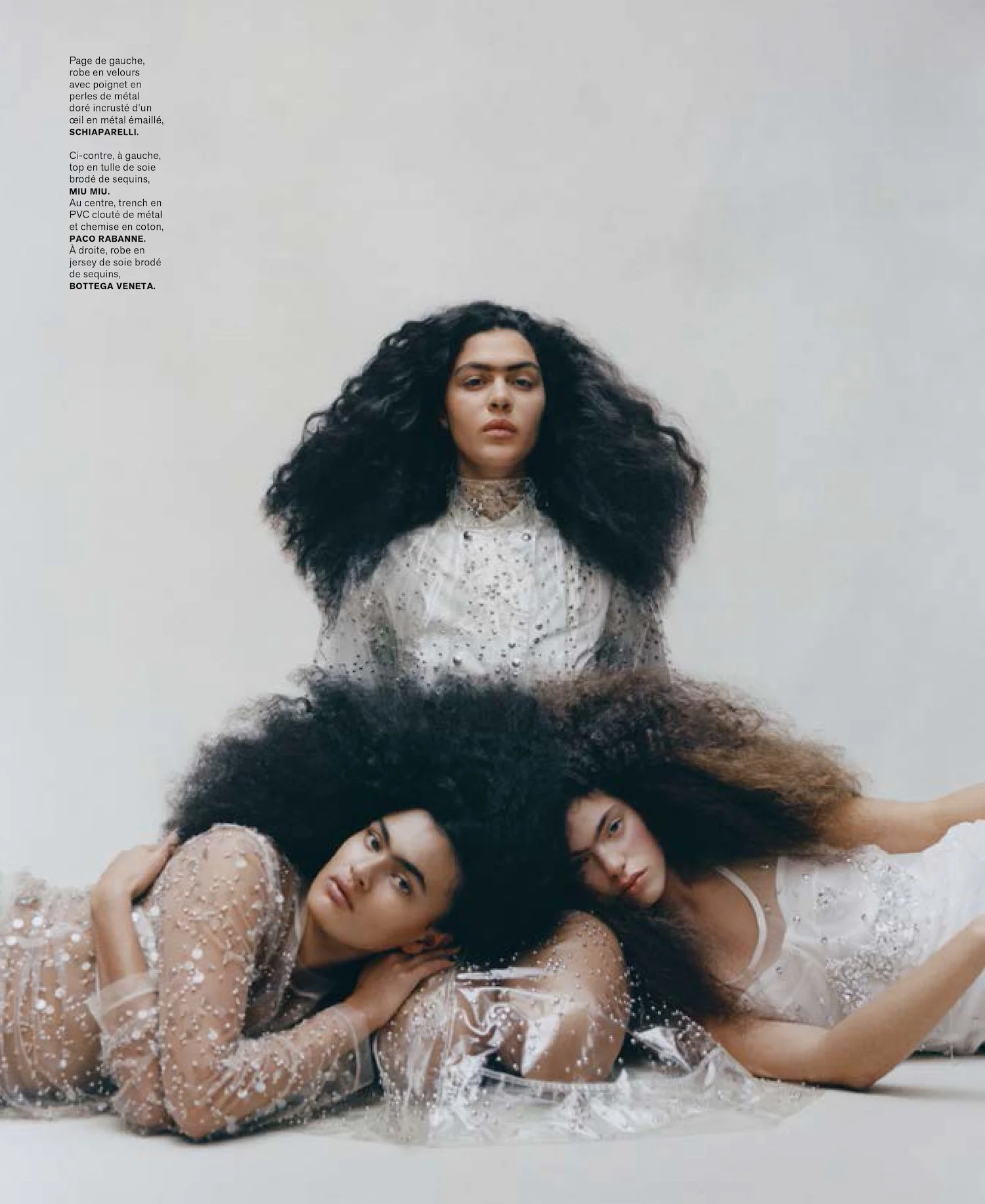 /Models Clara Fossar, Isla Gaskin, Ylang Messenguilar are styled by Marie Chaix in ‘Les Trois Grâces’, a spendid addition to M Le Magazine du Monde’s March 4, 2023 fashion issue.