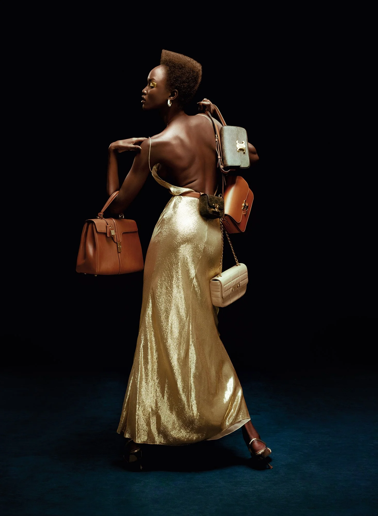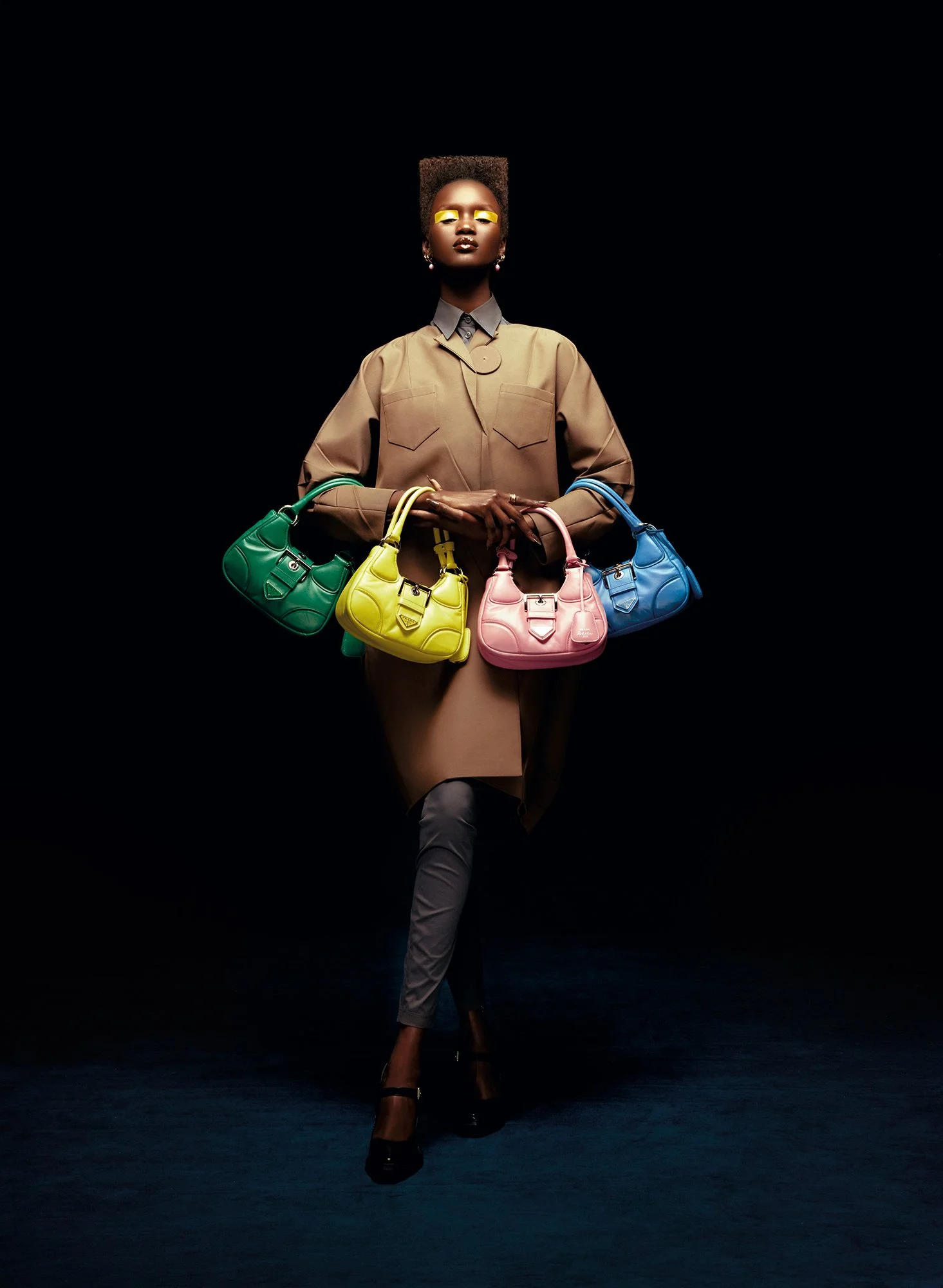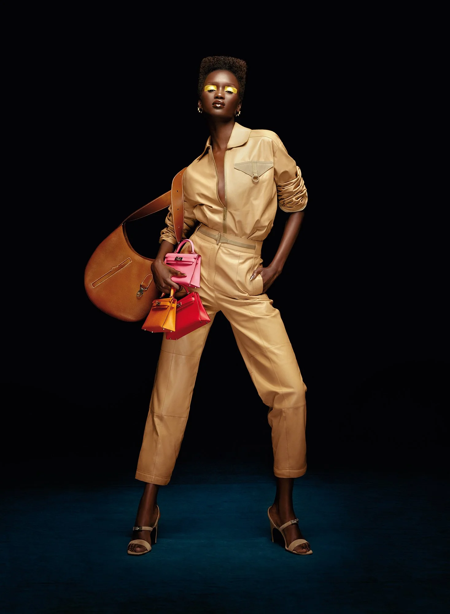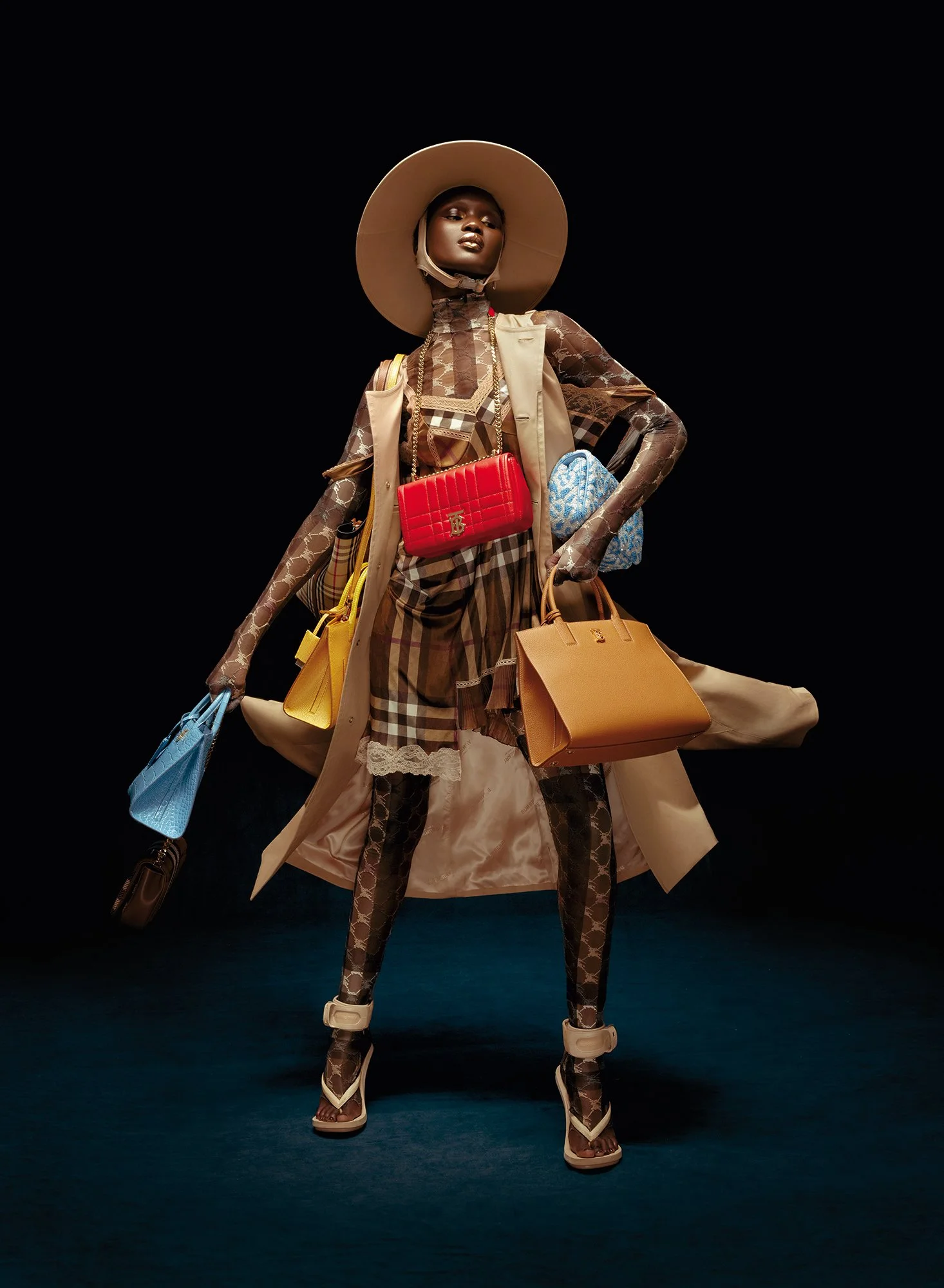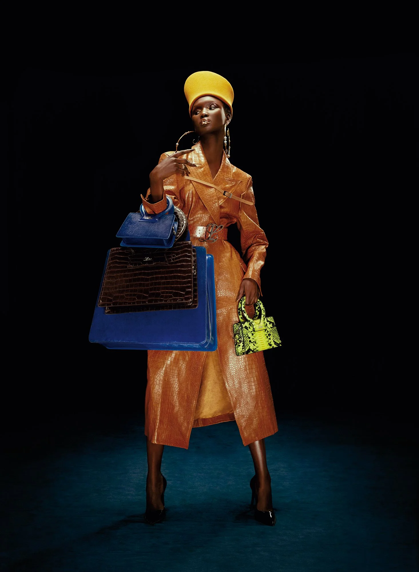/South Sudanese-Australian model Abény Nhial sends a Spring 2023 message from V Magazine: “Never underestimate just how many handbags an ace model can handle.”